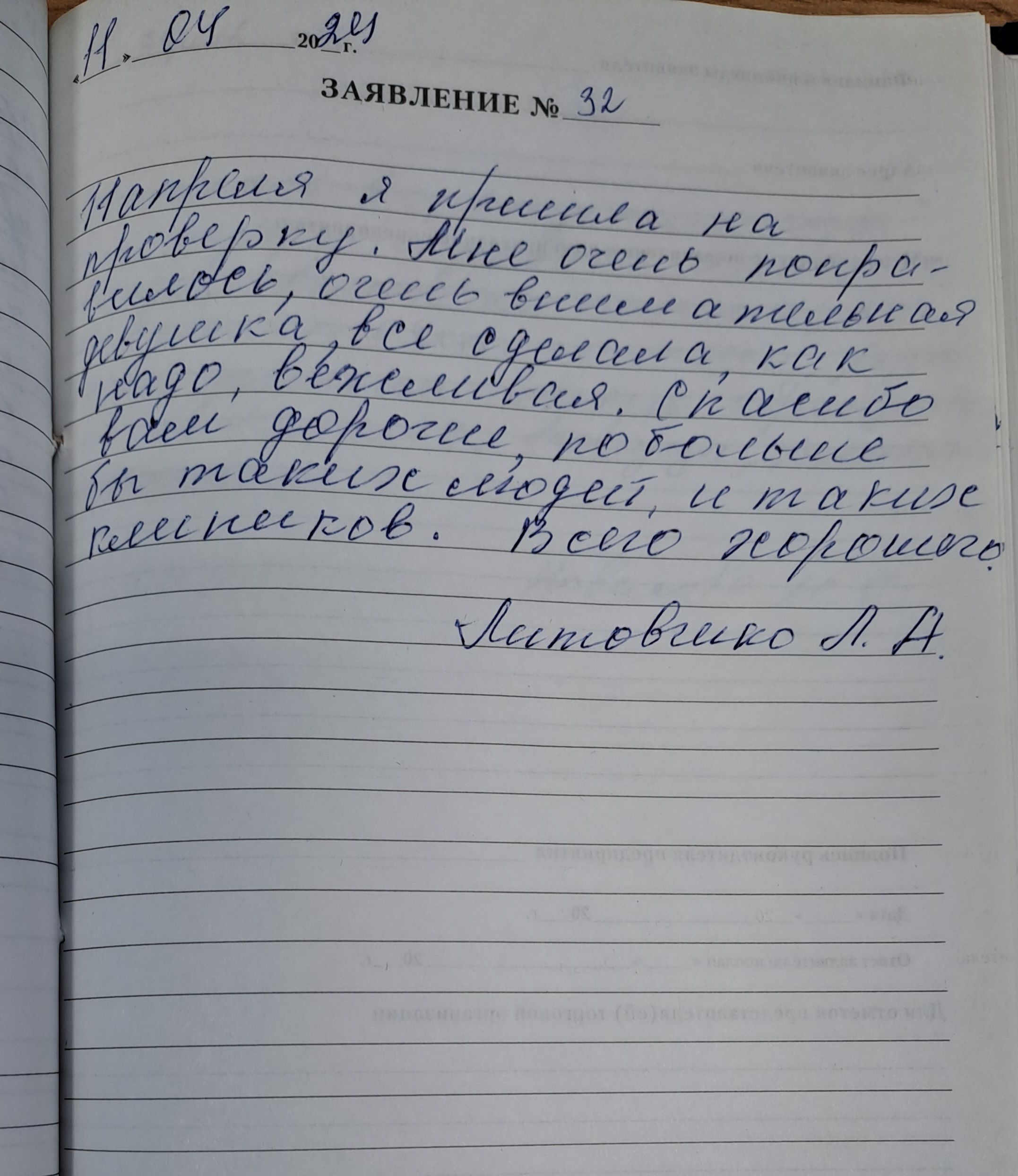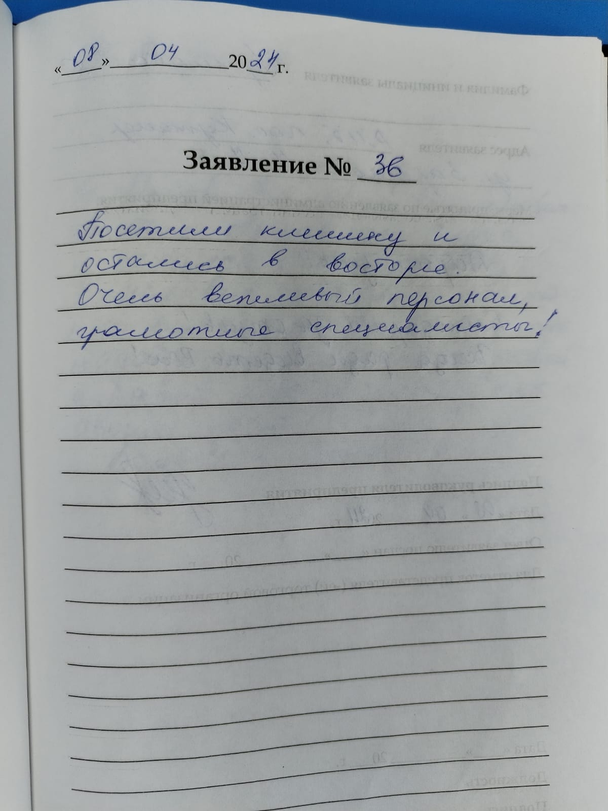 11 апреля я пришла на проверку. Мне очень понравилось, очень внимательная девушка, все сделала, как надо, вежливая. Спасибо вам дорогие , побольше бы таких людей и таких клиник. Всего хорошего.