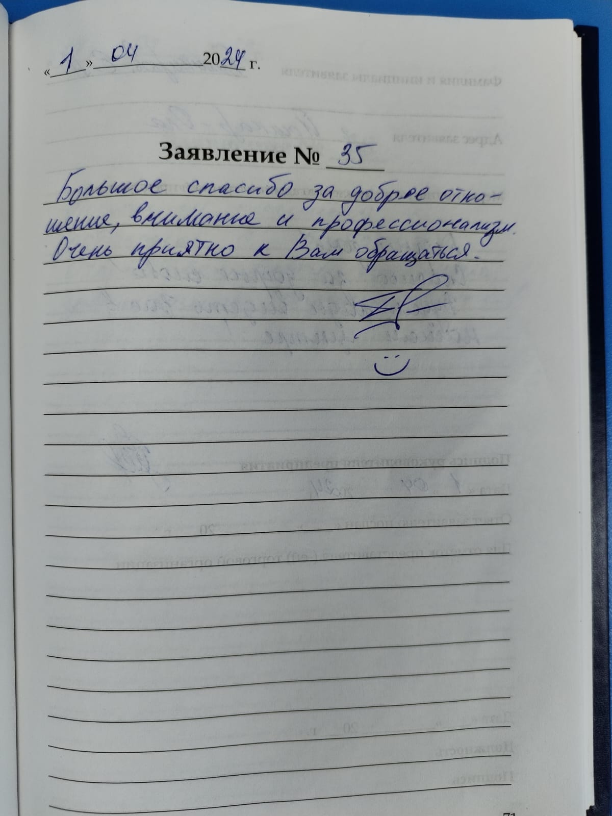 Большое спасибо за доброе отношение, внимание и профессионализм. Очень приятно к вам обращаться.