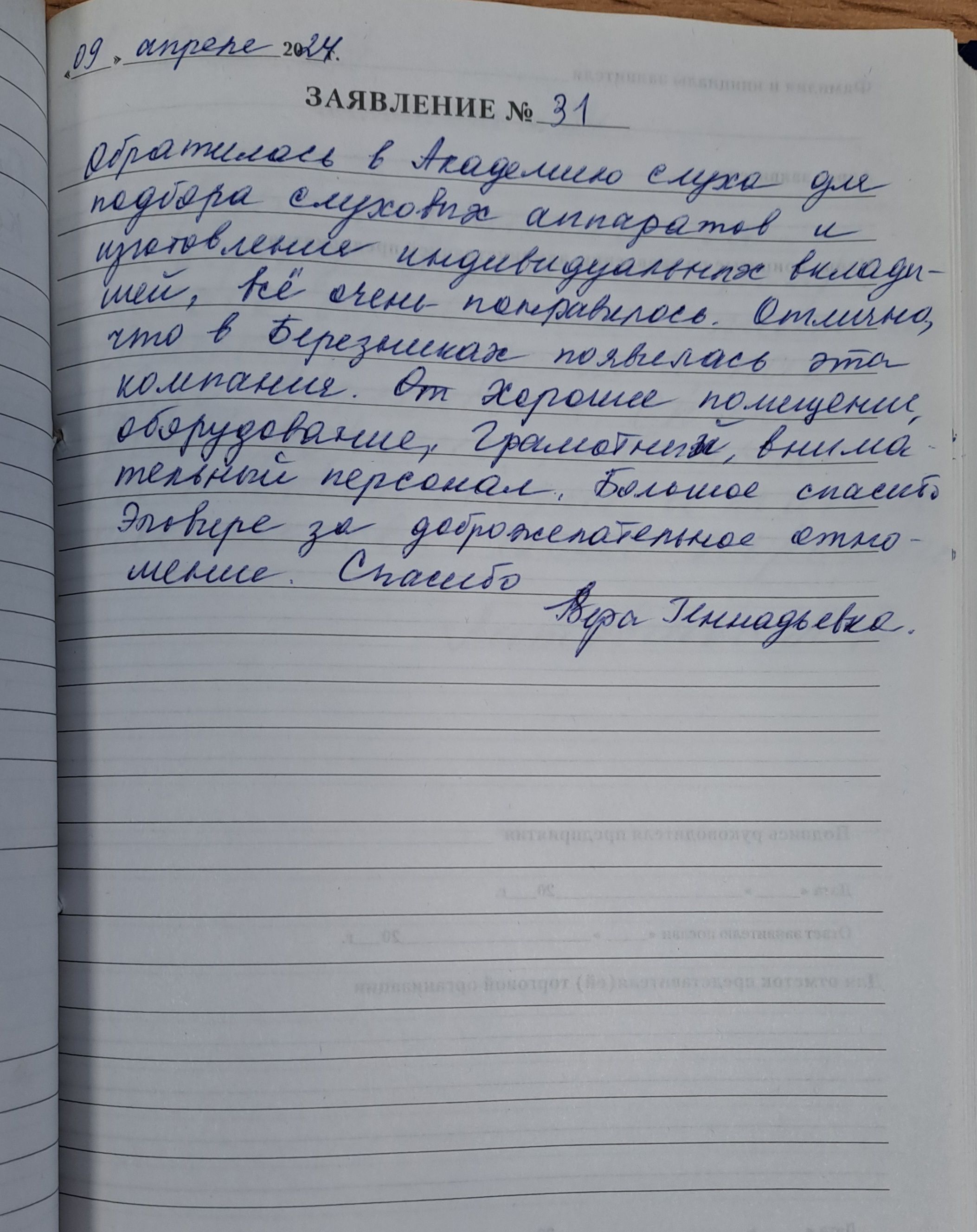 Хочу выразить благодарность коллективу центра "Академия слуха" за их терпение и доброе отношение к клиентам, а это не самые простые люди. Спасибо.