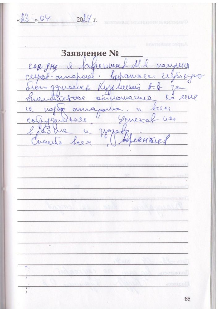 Сегодня я, Лаврентьев М.Л. получил слуховой аппарат. Выражаем огромную благодарность Кузьминой О.В. за внимательное отношение ко мне и подбор аппарата. и всем сотрудникам Успехов в работе и здоровья.