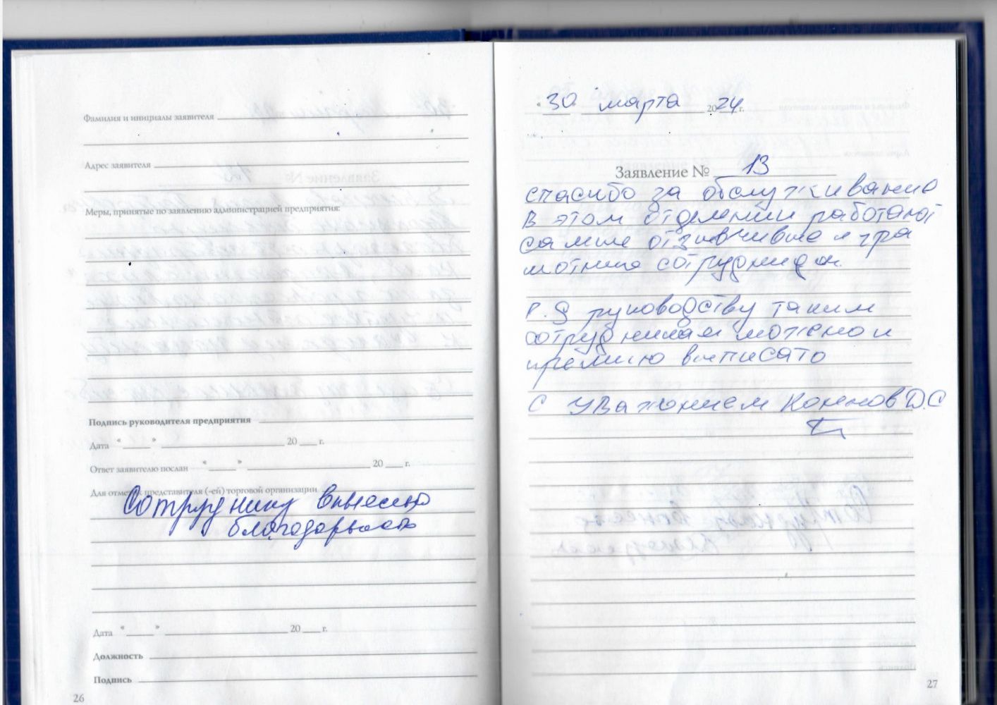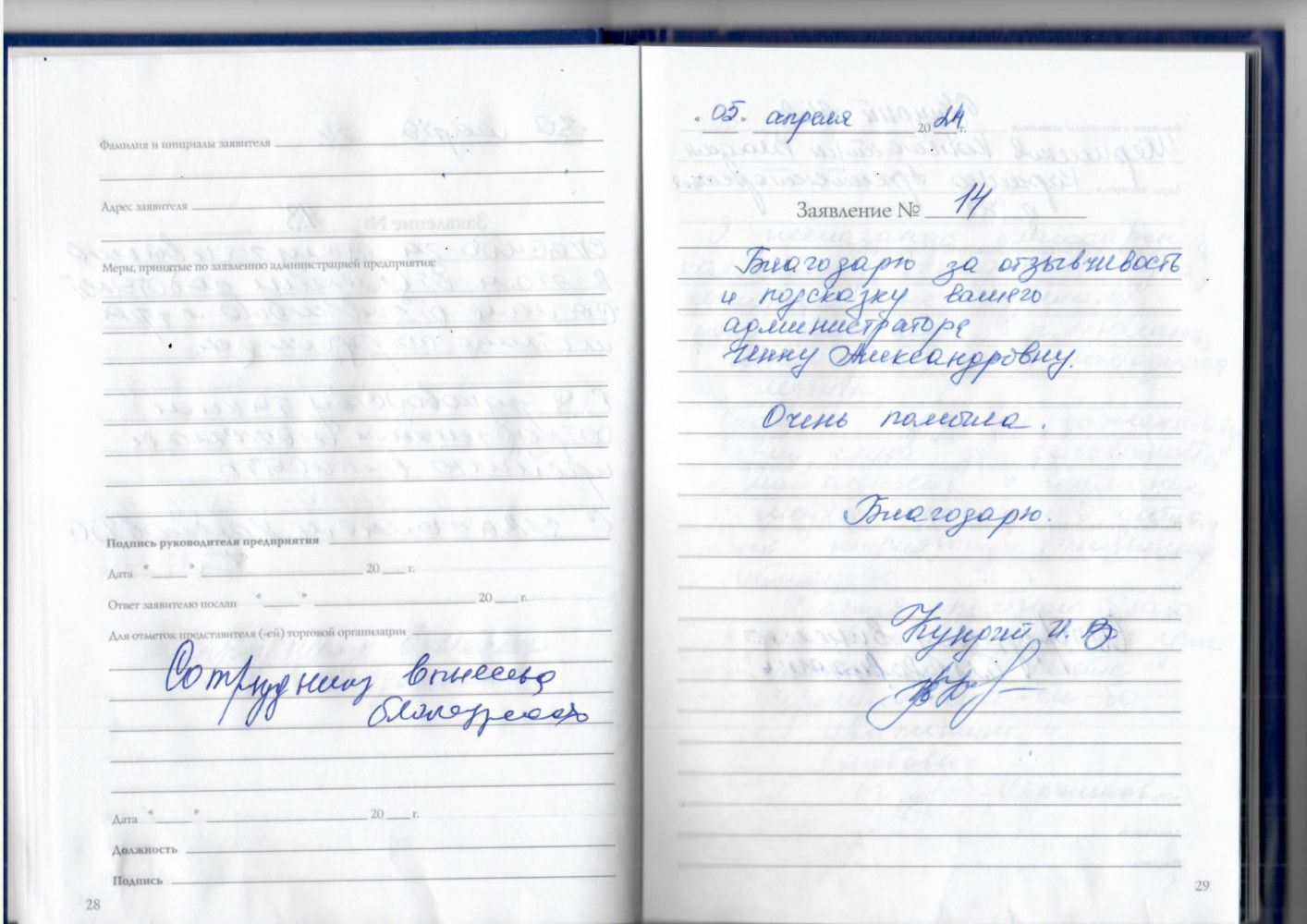 Благодарность за отзывчивость и подсказку вашего администратора Инну Александровну . Очень помогла .