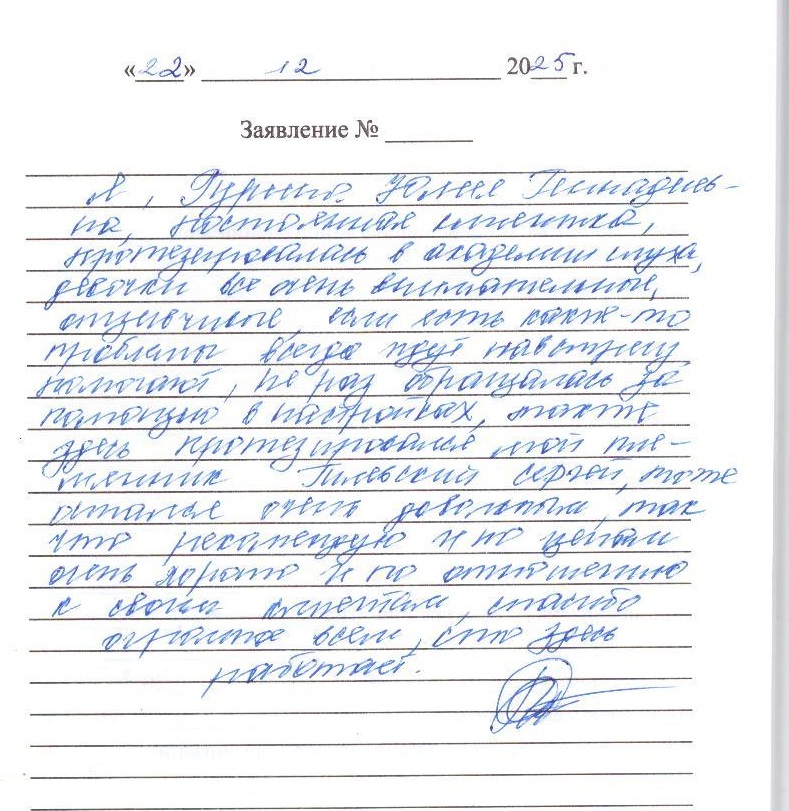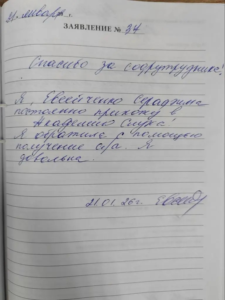 Спасибо за сотрудничество! Я, Евсейченко Серафима постоянно прихожу в Академию Слуха! Я обратила с помощью получения с/с. Я довольна. 21.01.26г. подпись