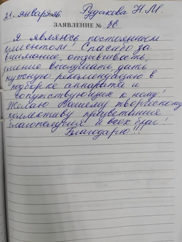 Я являюсь постоянным клиентом! Спасибо за внимание, отзывчивость, умение выслушать, дать нужную рекомендацию в подборке аппарата и сопутствующих к нему! Желаю Вашему творческому коллективу процветания, благополучия и всех благ!!! Благодарю!!!