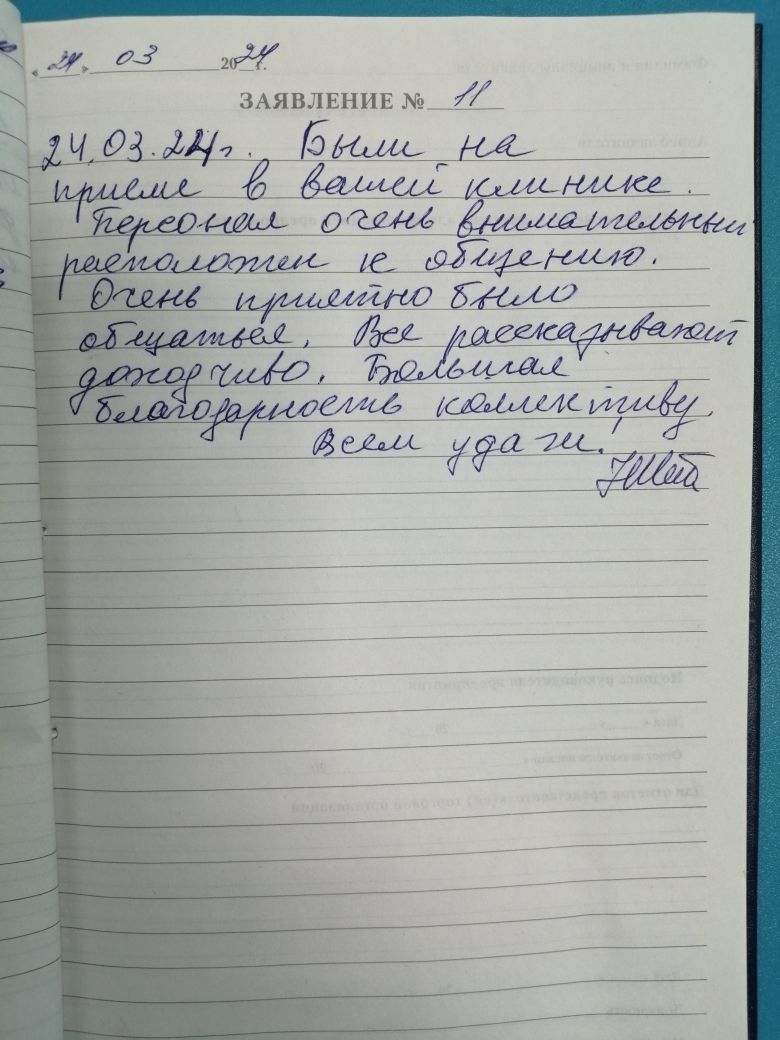 24.03.24г Были на приеме в вашей клинике. Персонал очень внимательный, расположен к общению.