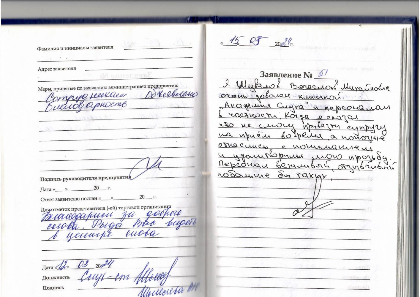 Я Шувалов Вячеслав Михайлович очень доволен клиникой "Академии Слуха" и персоналом в частности.Когда я сказал что не смогу привезти супругу на приём вовремя,а попозже отнеслись пониманием и удовлетворили мою просьбу.Персонал вежливый,отзывчивый побольше бы таких.15.03.2024