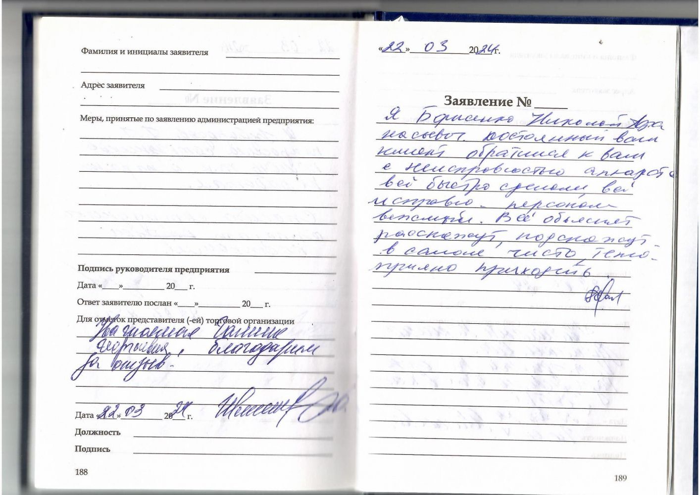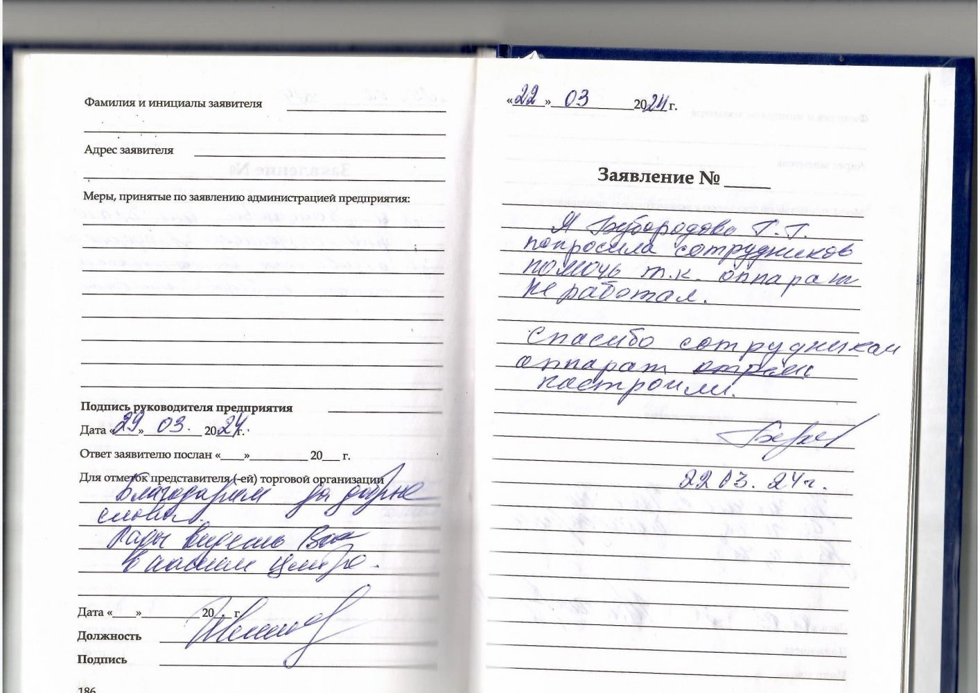 Я,Борисенко Николай Афанасьевич постоянный ваш клиент обратился к вам за с неисправностью аппарата, всё быстро сделали, всё исправно,персонал вежливый. Всё объяснят, расскажут, подскажут, в салоне чисто,тепло,приятно приходить.22.03.2024.