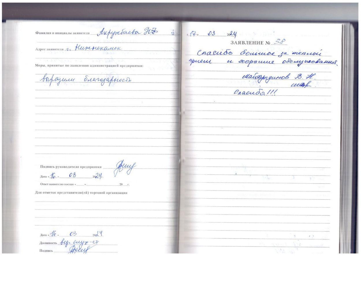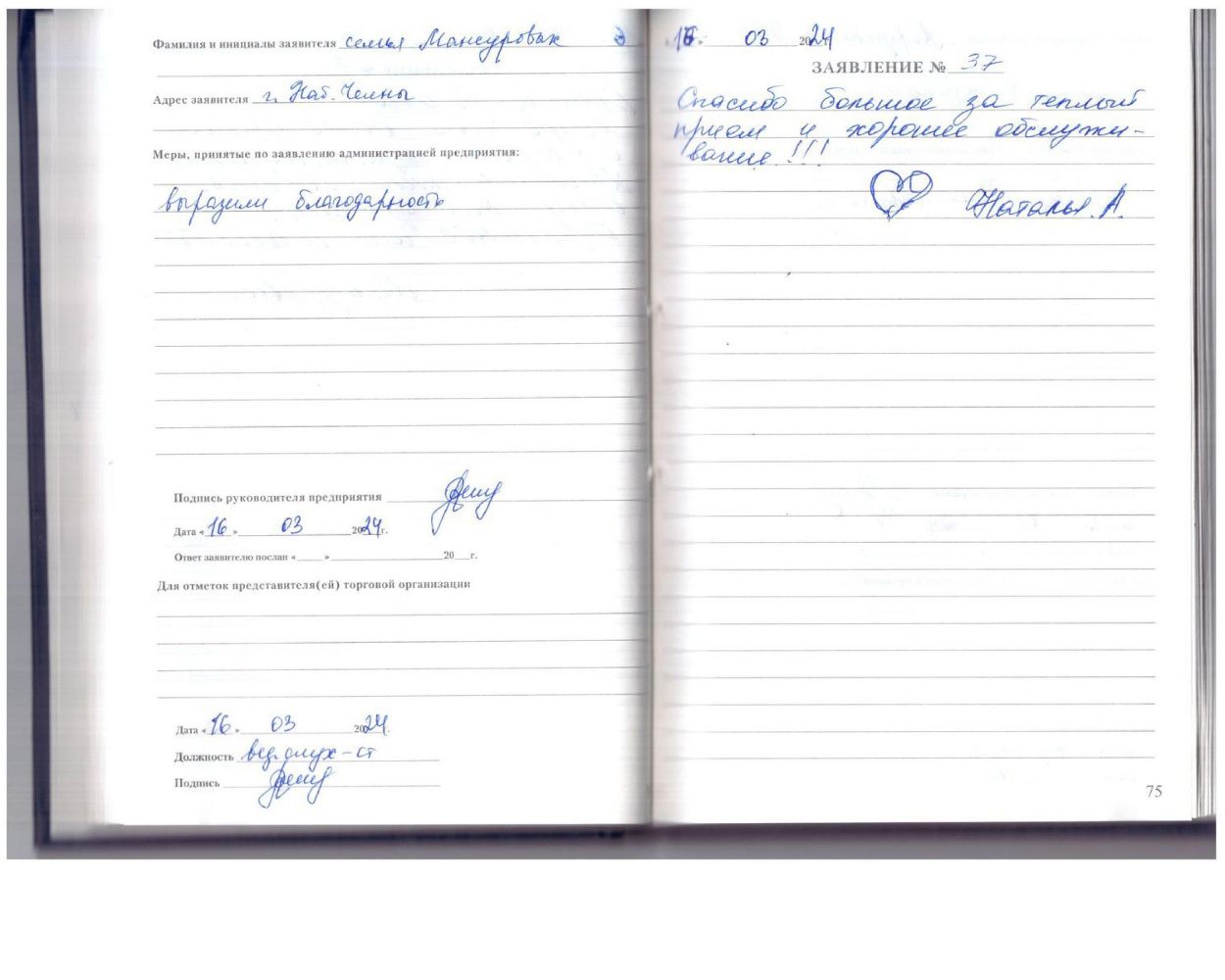 Спасибо большое за теплый прием и хорошее обслуживания.