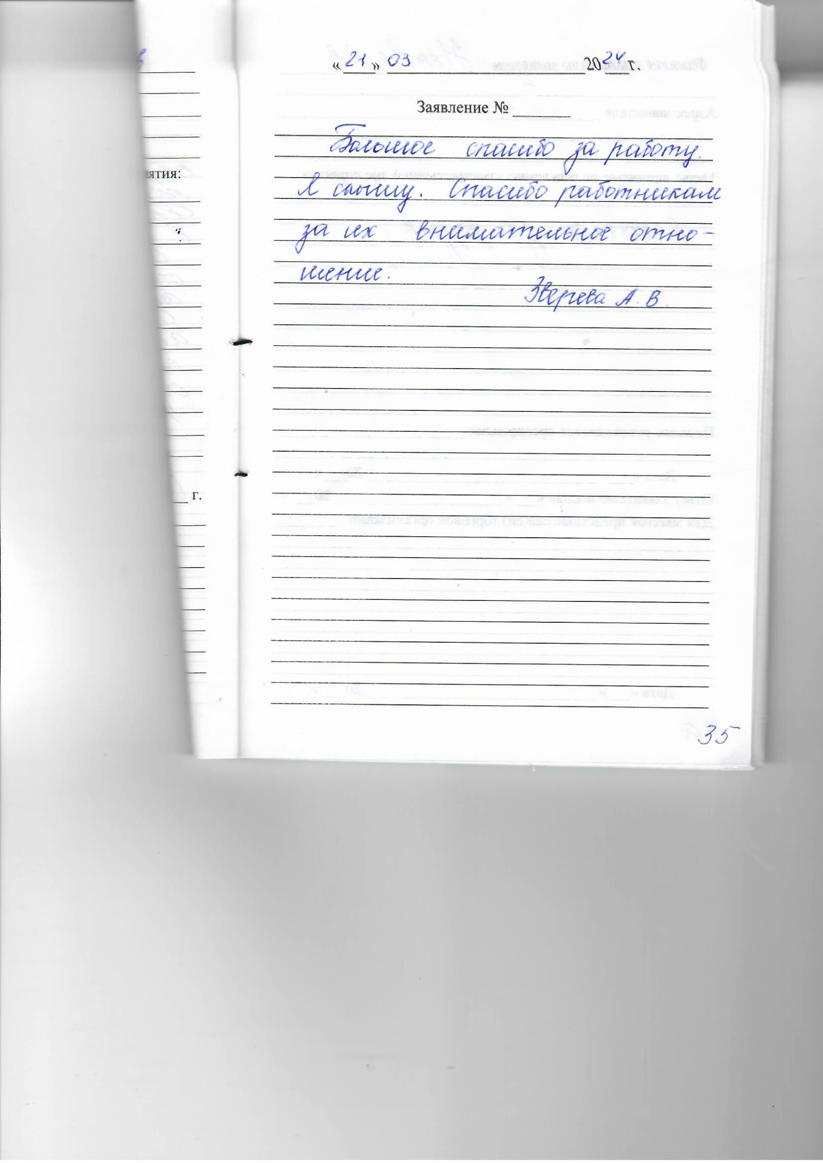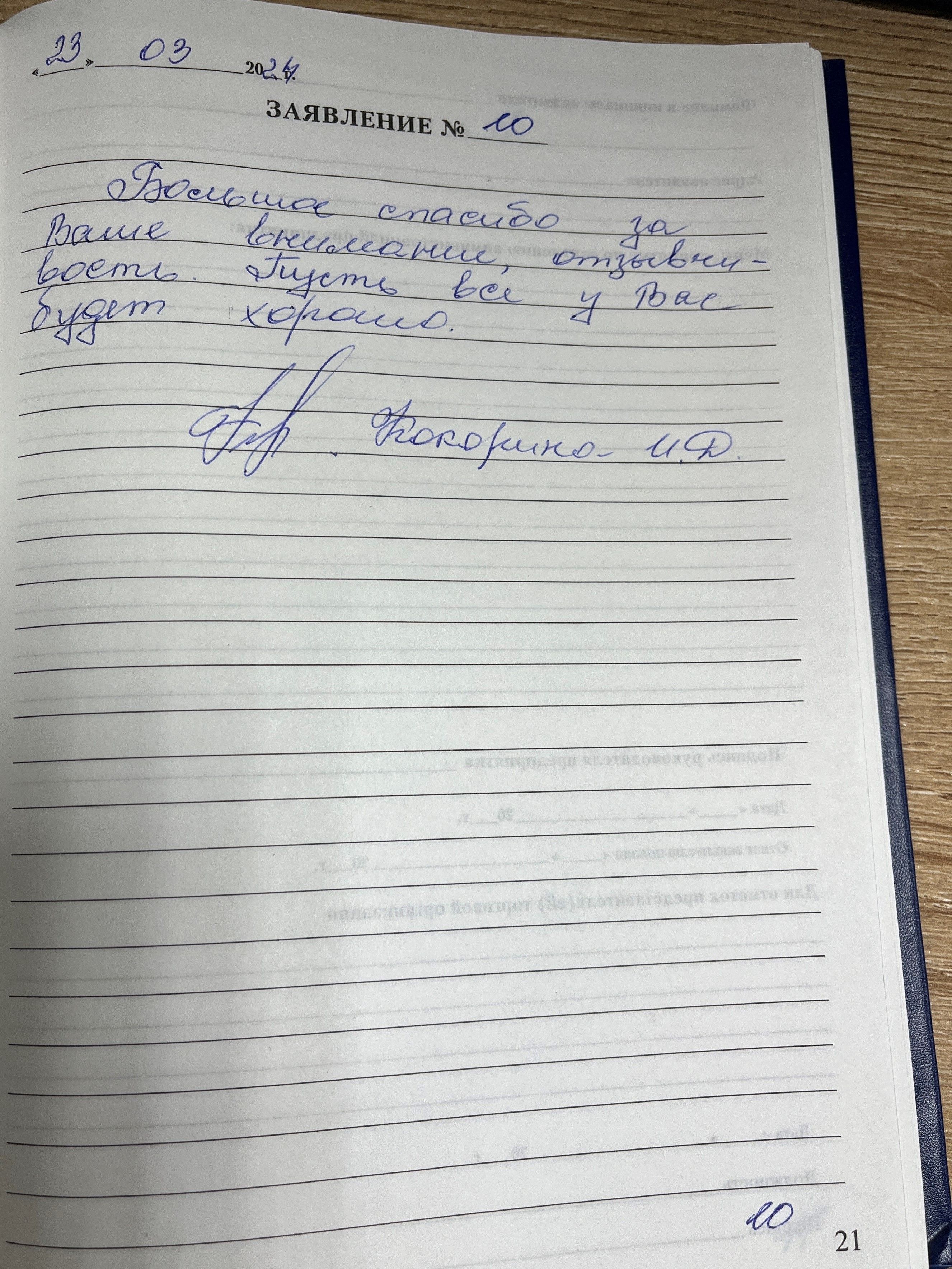 Большое спасибо за работу. Я слышу. Спасибо работникам за их внимательное отношение. Зверева АВ