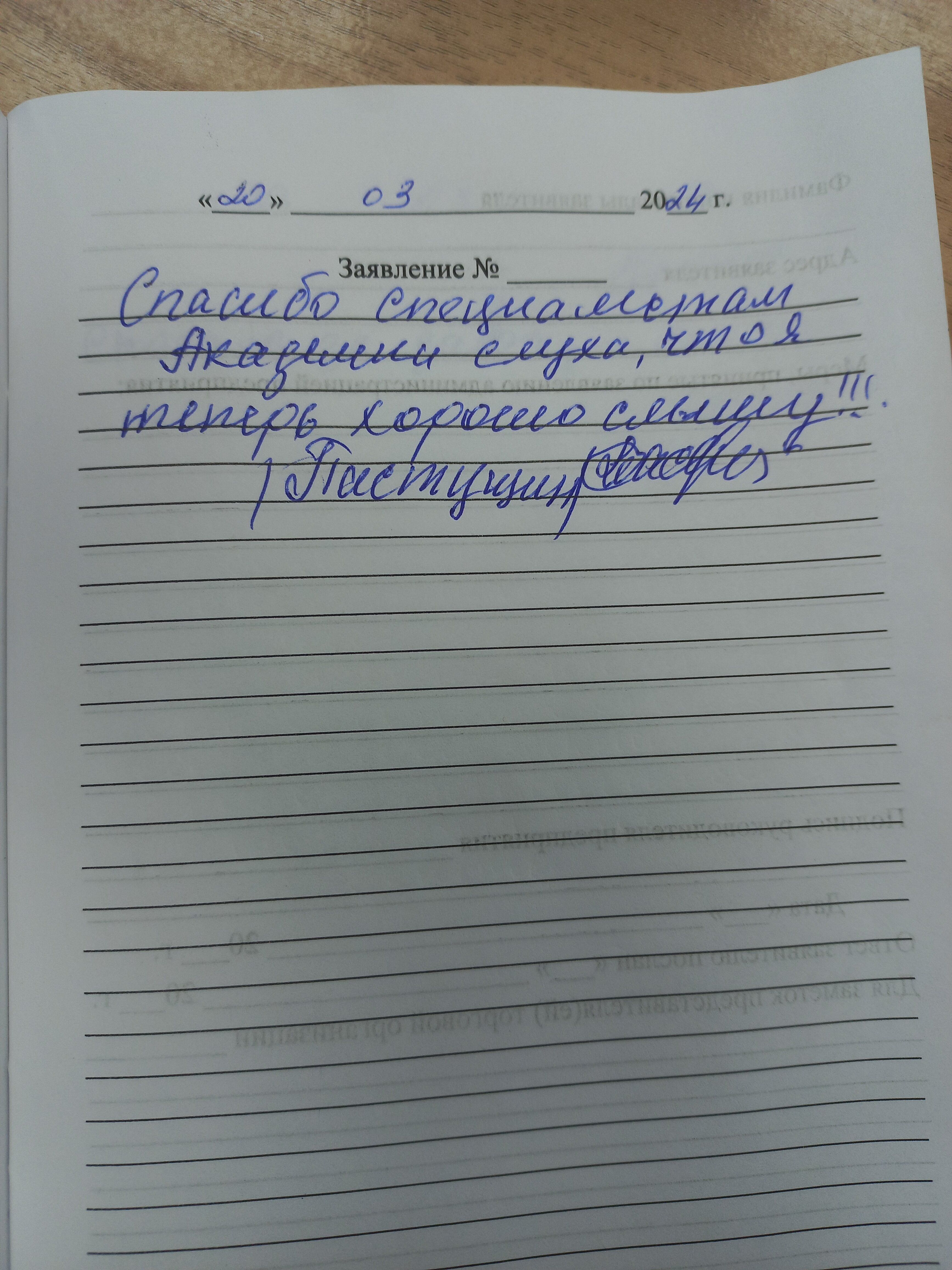 Спасибо сотрудникам Академии Слуха за решение моей проблемы. Неоднократно обращалась и сотрудники быстро оказывали помощь в моих проблемах. Спасибо!