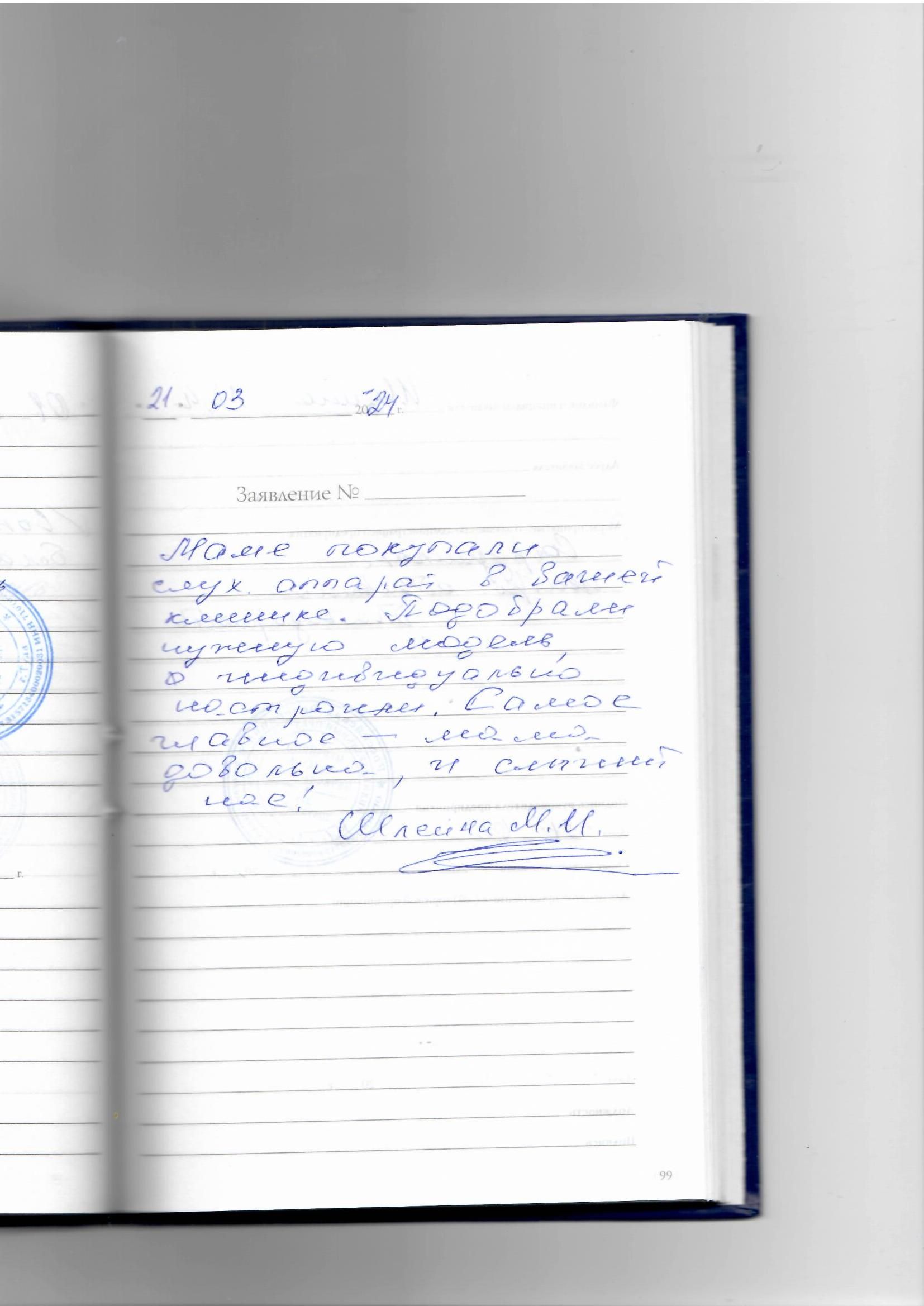 От Жаркова Е.А. благодарю коллектив Академии Слуха за качественное и отличное обслуживание
