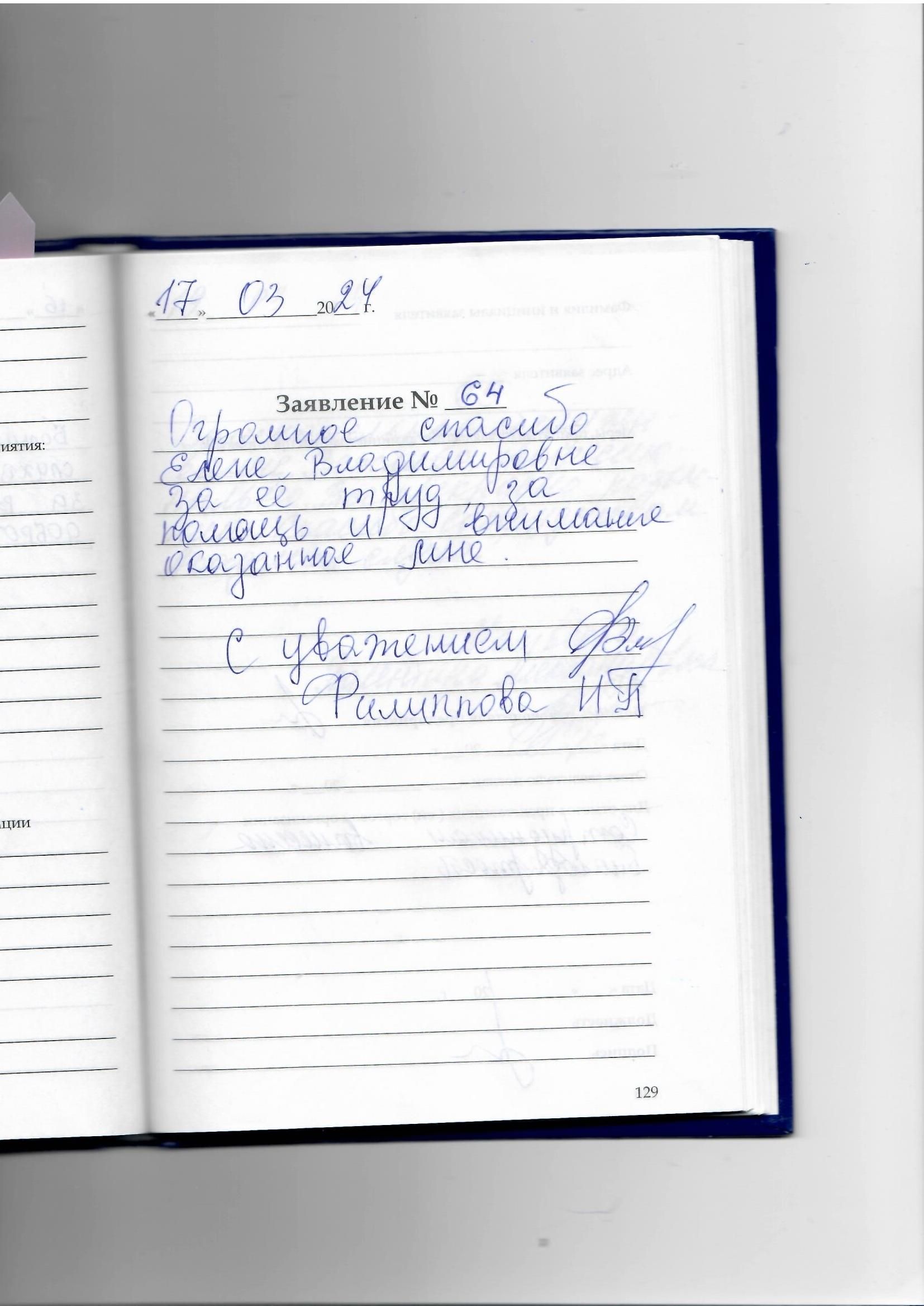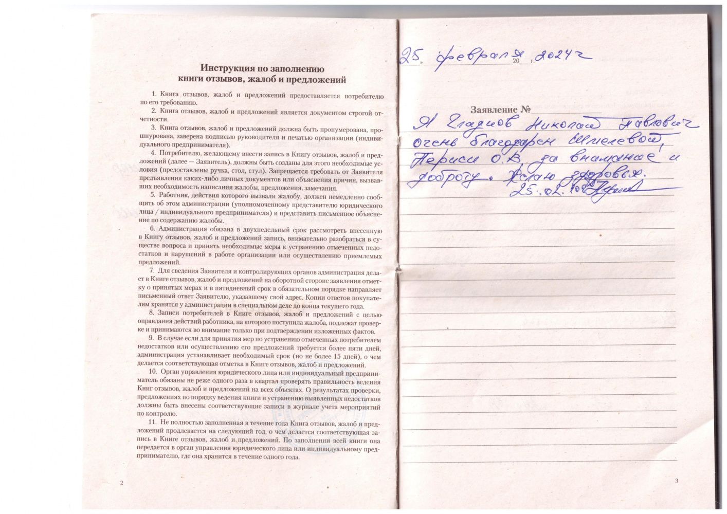 Я, Гладков Николай Павлович очень благодарен Шмелевой, Периси О. В. за внимание и доброту. Желаю здоровья. 25.02.2024