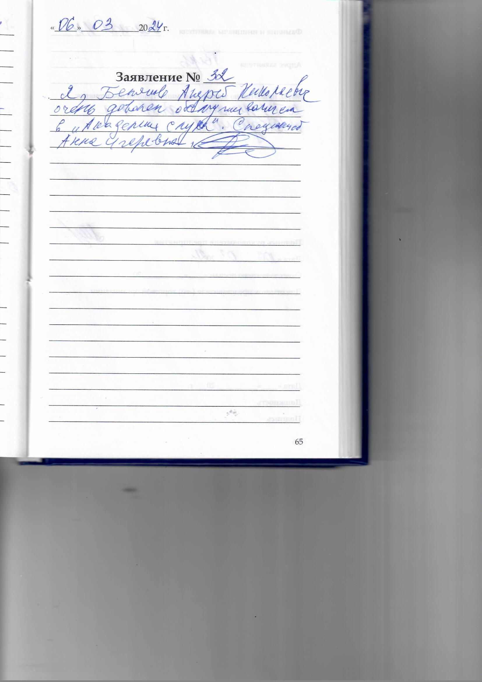 Благодарю сотрудников центра Академии Слуха за их очень внимательное,доброе отношение к нам, пожилым людям.Я постоянный клиент и всегда девочки мне очень помогают. 23.03.2024