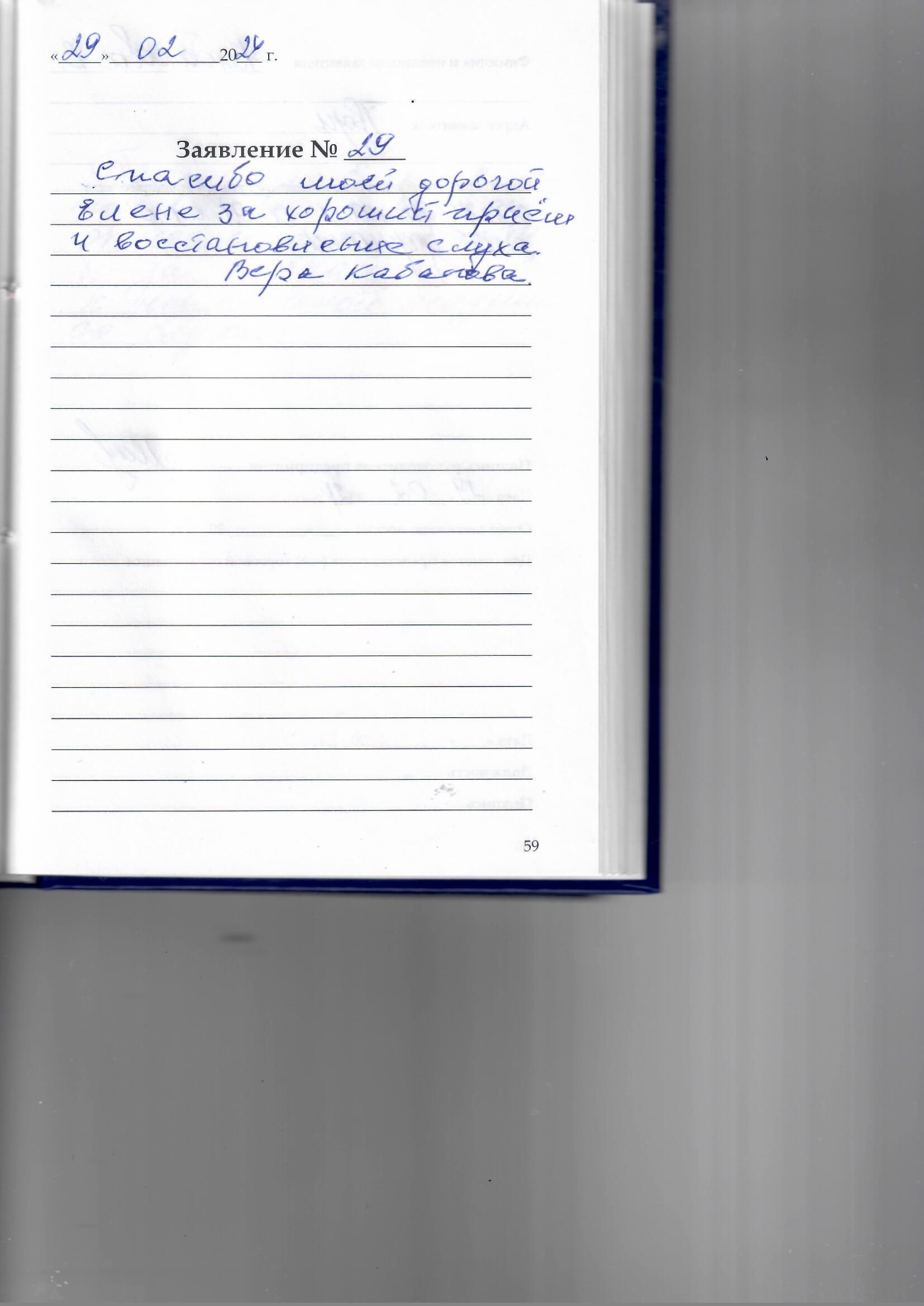 Спасибо моей дорогой Елене за хороший приём и восстановление слуха. Вера Кабакова.