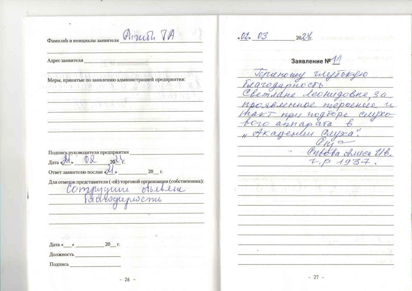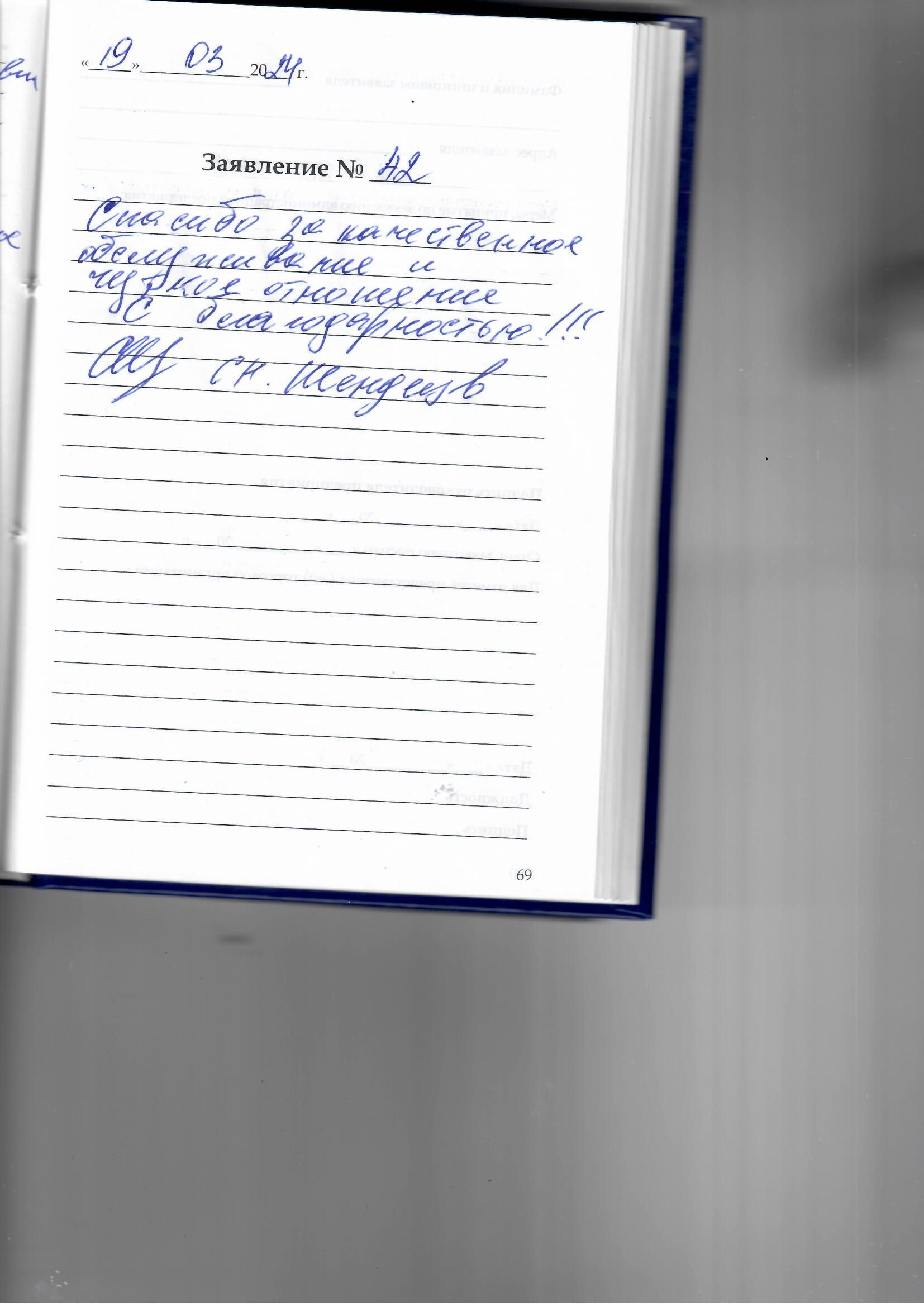Я выражаю благодарность за деда ,который раз Вы нам очень помогаете.Коллектив всегда добродушен и внимателен.Спасибо!24.03.2024
