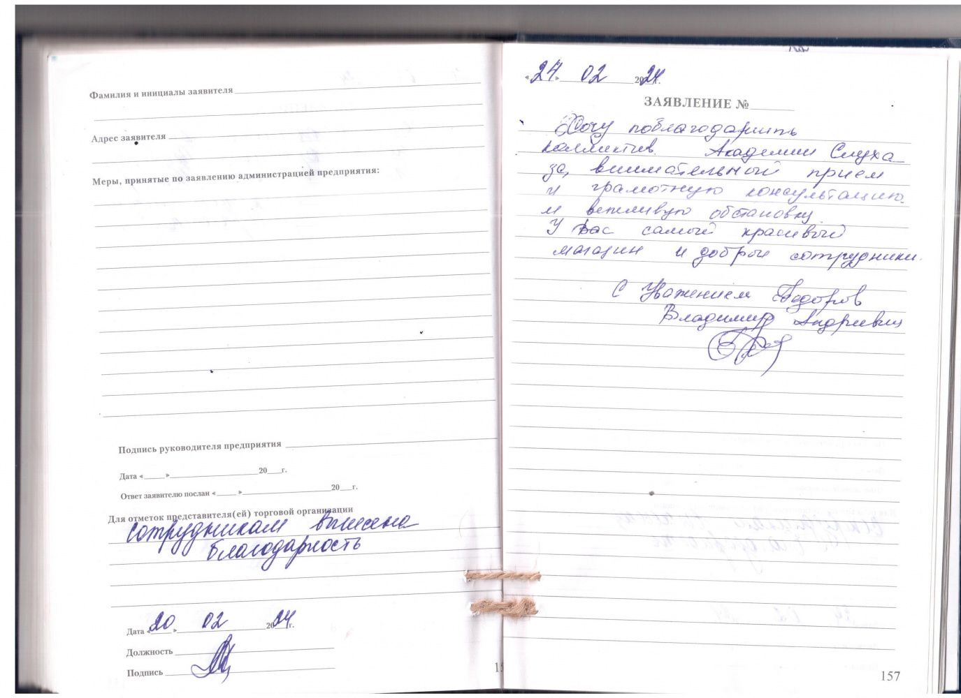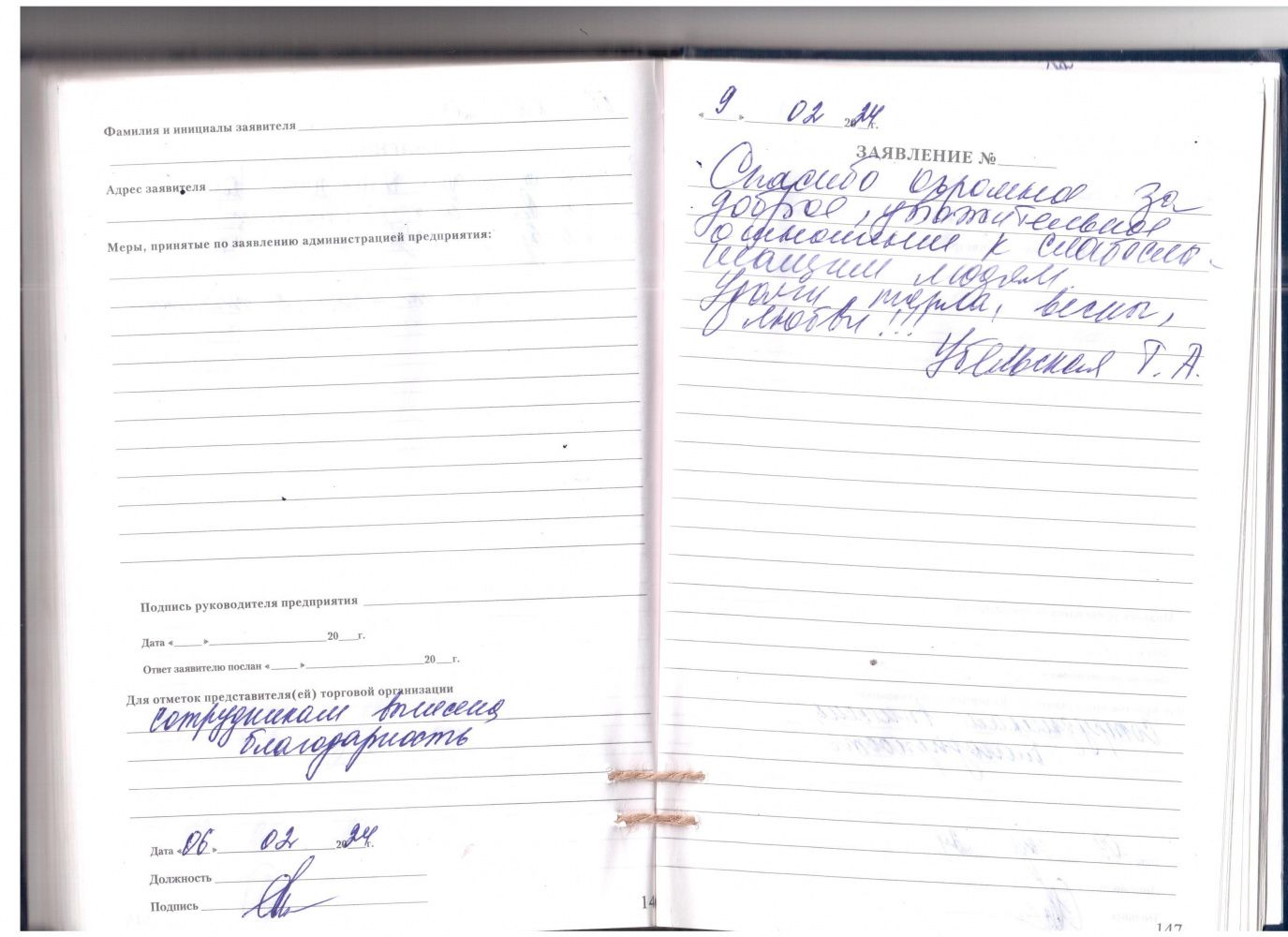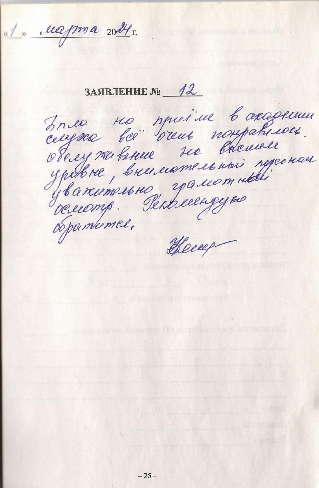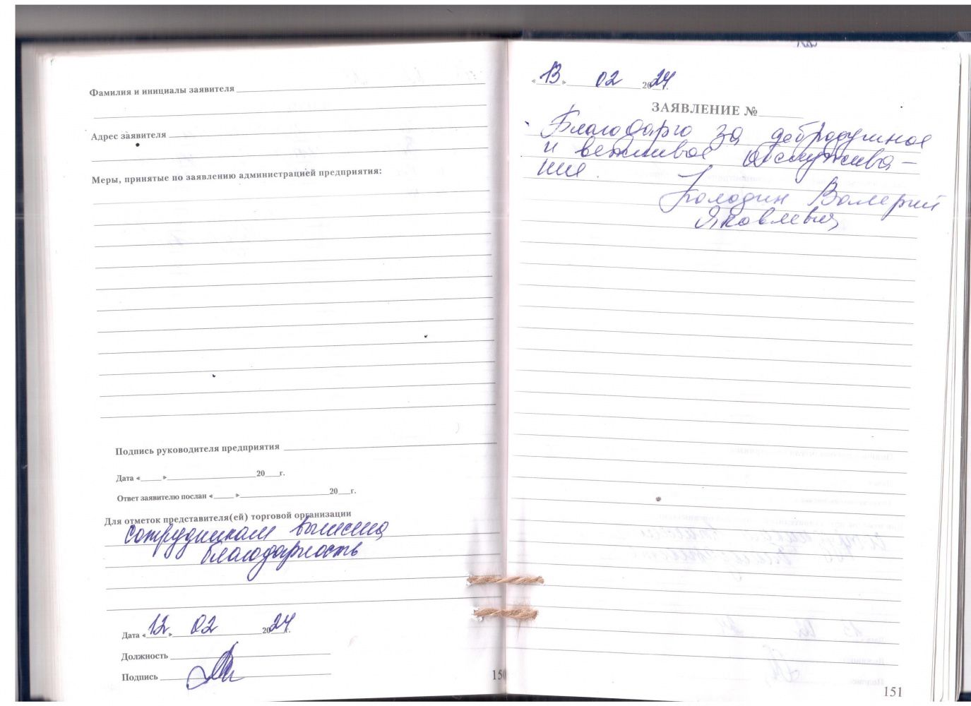 Благодарю за добродушное и вежливое обслуживание.