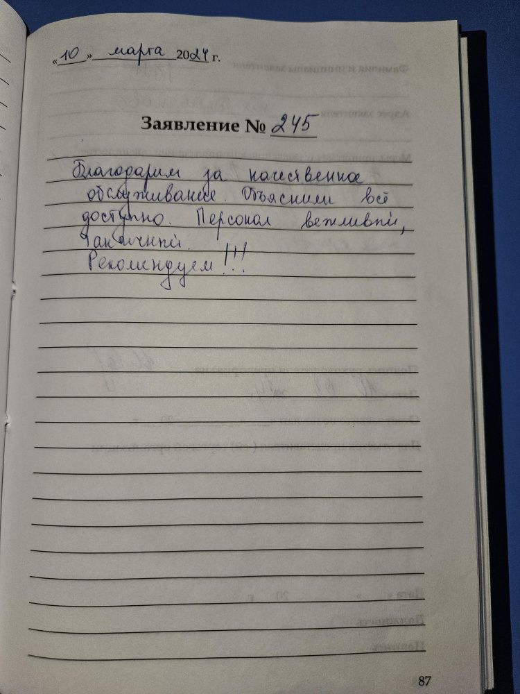 Очень вежливый, внимательный персонал. Все доступно объяснили. Очень понравилось обслуживание