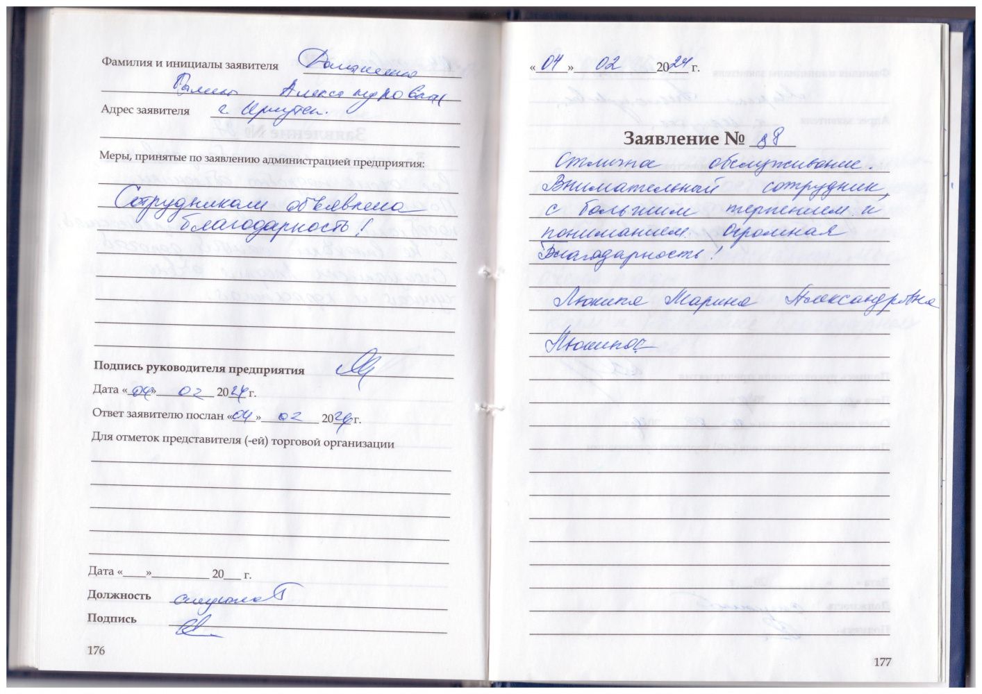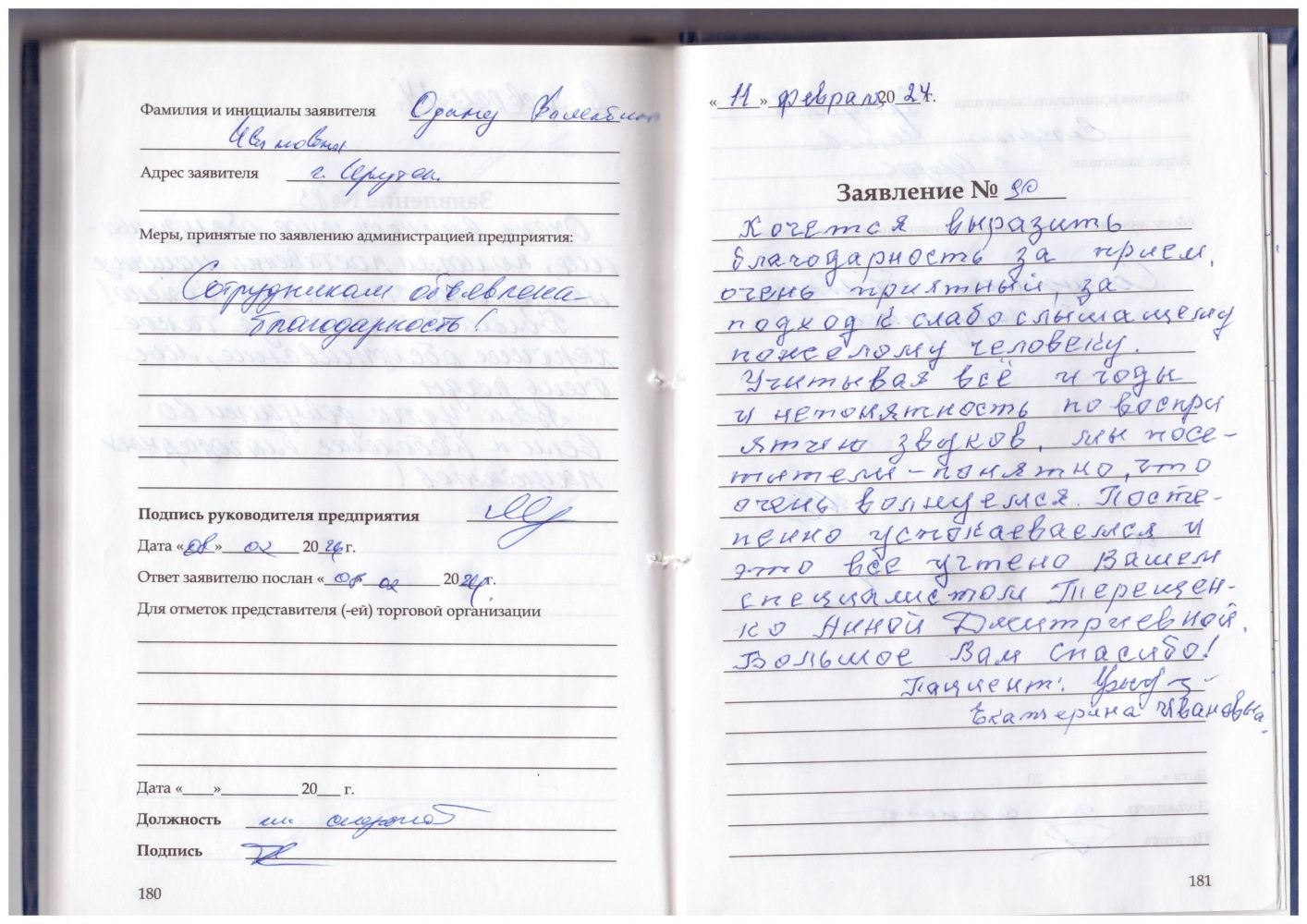 Хочется выразить благодарность за прием, очень приятный, за подход к слабослышащему пожилому человеку.