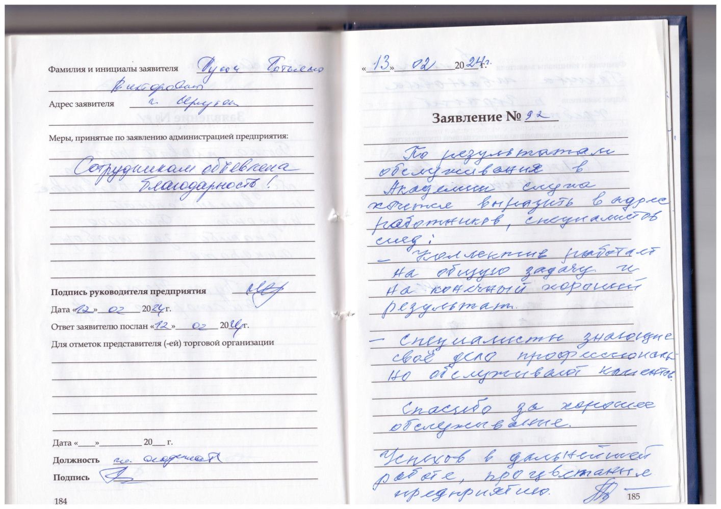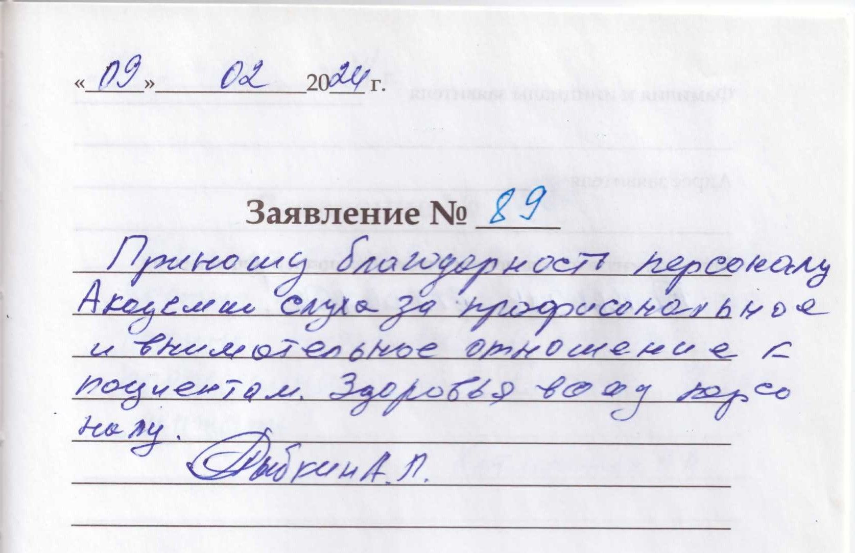 По результатам обслуживания в Академии слуха хочется выразить в адрес работников, специалистов след: