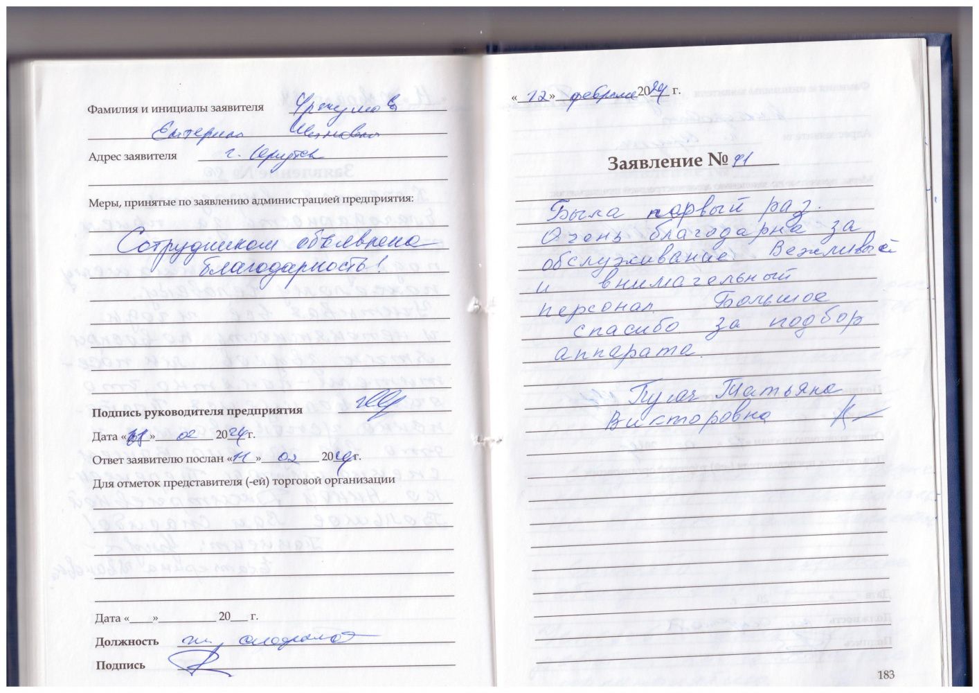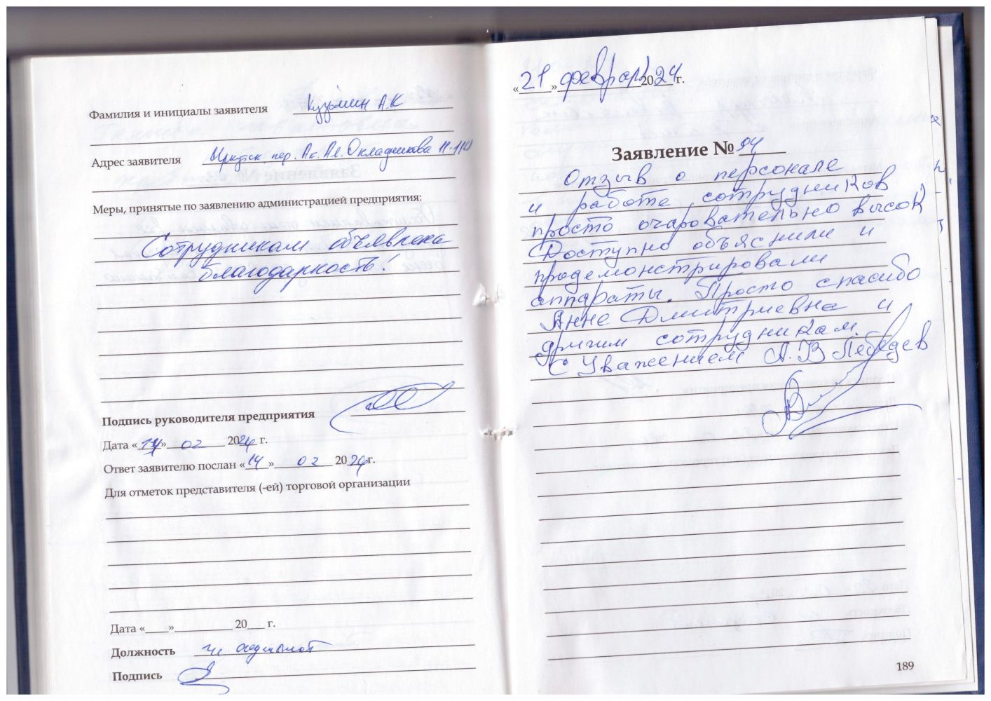 Отзыв о персонале и работе сотрудников просто очаровательно высок. Доступно объяснили и продемонстрировали аппараты. Просто спасибо Анне Дмитриевне и другим сотрудникам. С Уважением А. В. Лебедев.