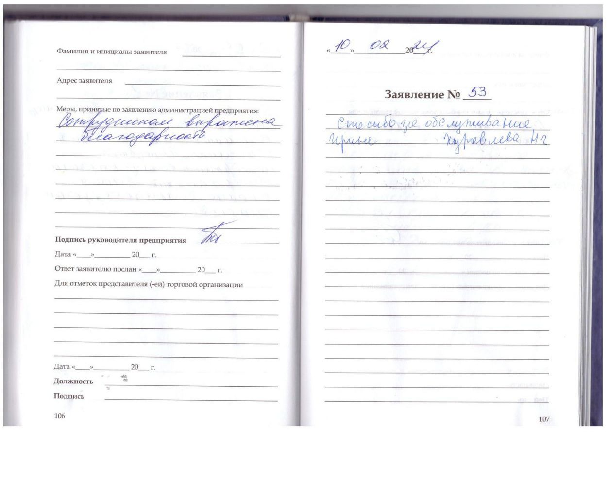 Заявление № 9