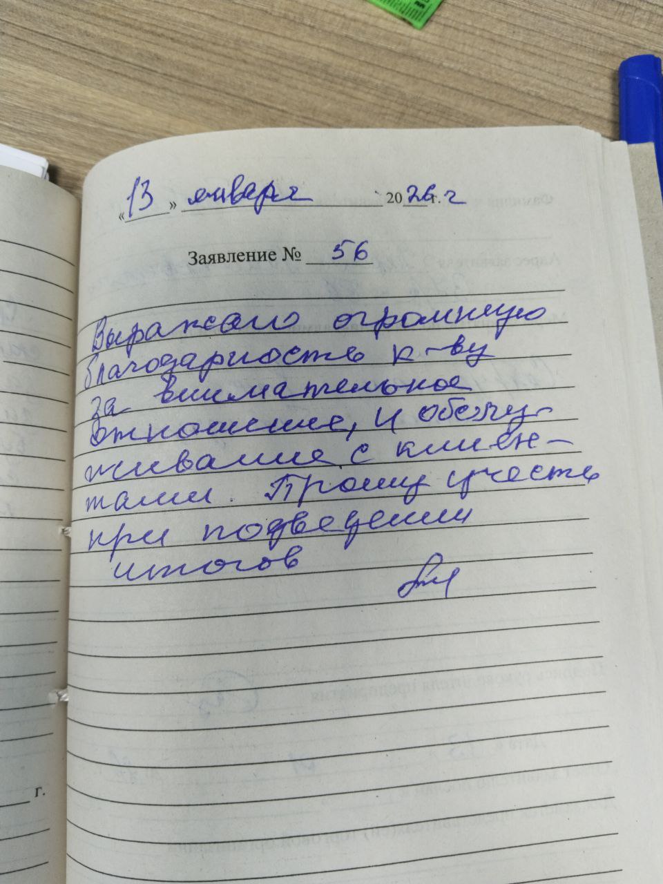 Выражаю огромную благодарность к-ву за внимательное отношение, и обслуживание с клиентами. Прошу учесть при подведении итогов.