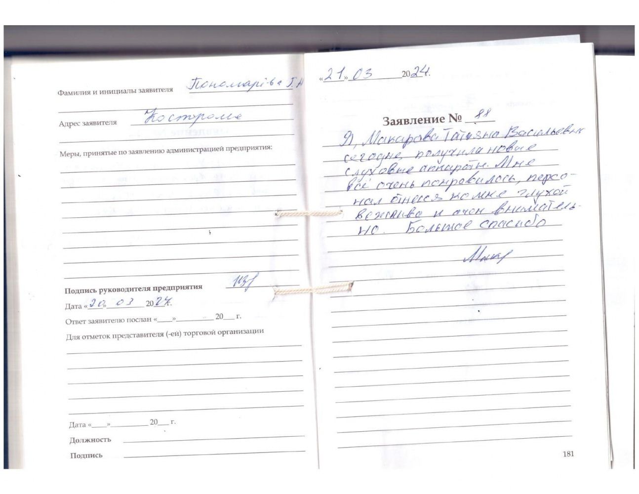 Я, Макарова Татьяна Васильевна, сегодня получила новые слуховые аппараты. Мне всё очень понравилось, персонал отнёсся ко мне глухой вежливо и очень внимательно. Большое спасибо.