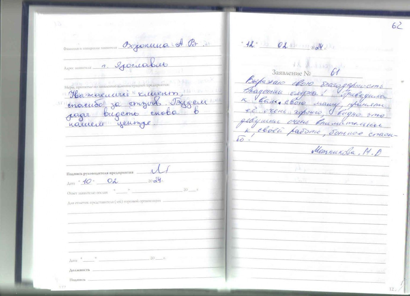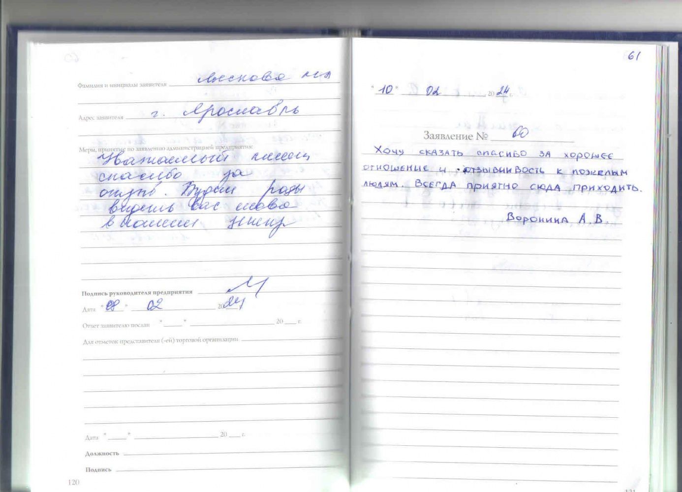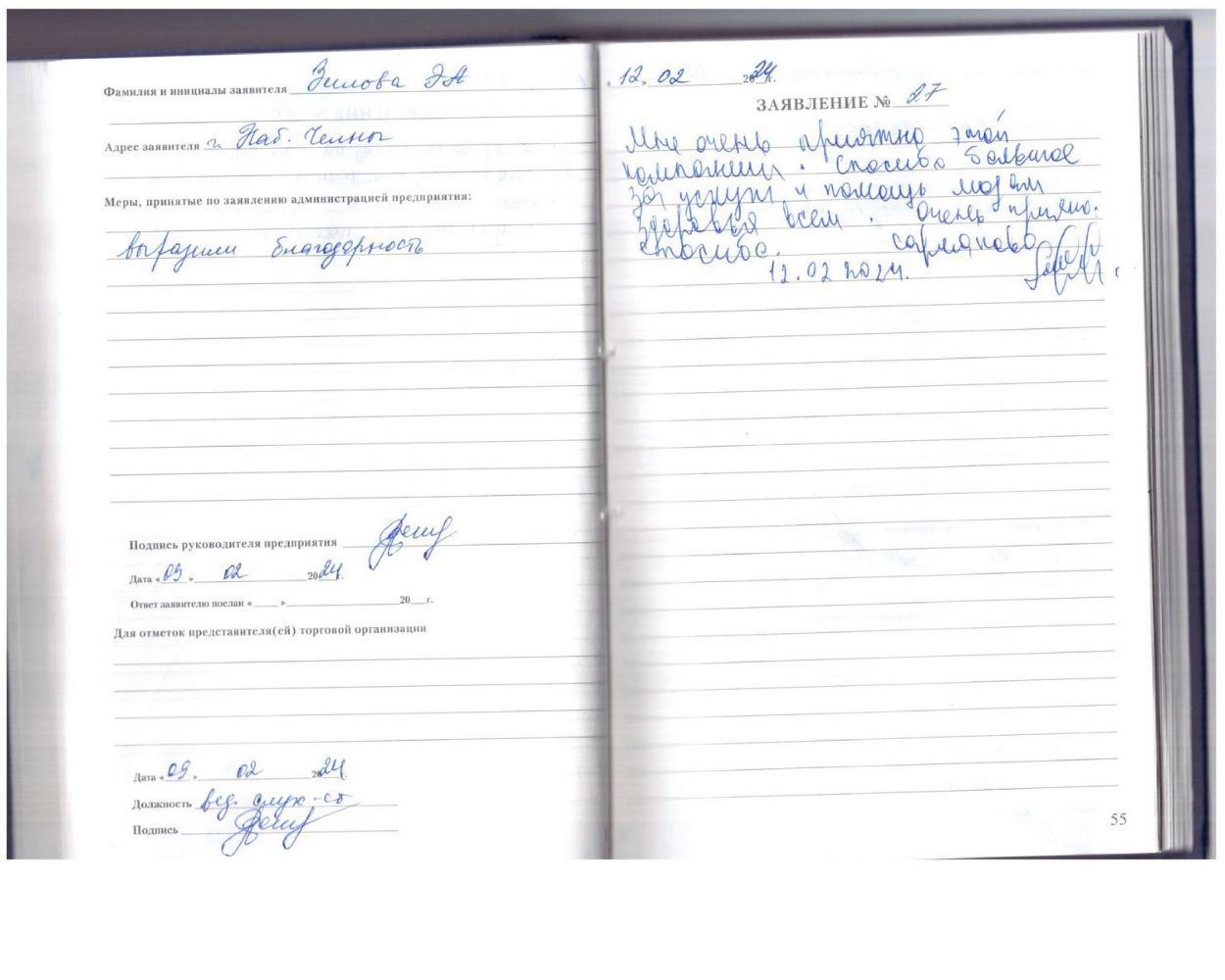 Мне очень приятно этой компании. Спасибо большое за услугт и помощь людям здоровья всем. Очень приятно. Спасибо. Сарманово 12.02.2024. (подпись)