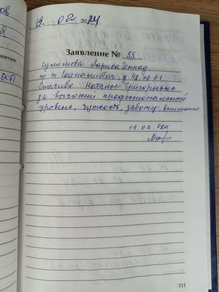 Спасибо Наталье Григорьевне за высокий профессиональный уровень. Чуткость, заботу, внимание.