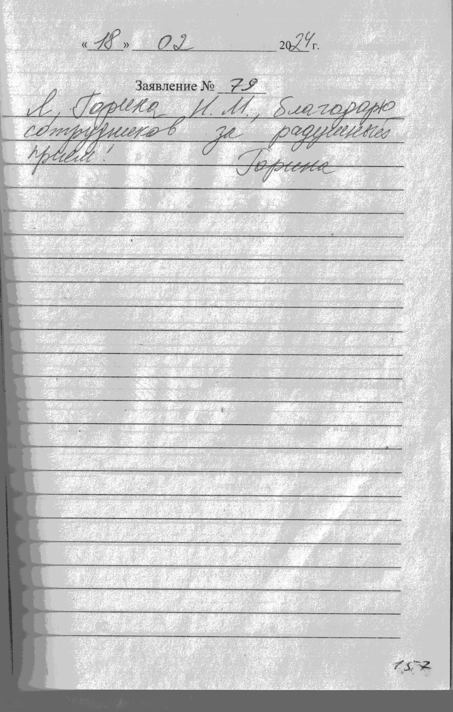 Я, Горина Н.М., благодарю сотрудников центра за радушный прием!