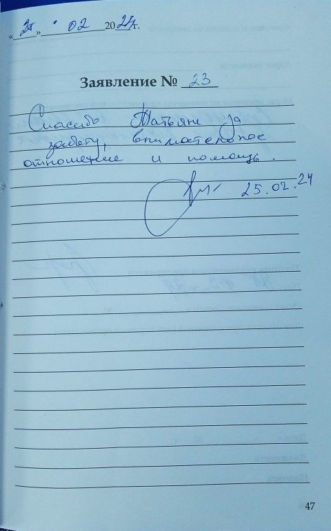 Спасибо Татьяне, за заботу, внимательное отношение, помощь.