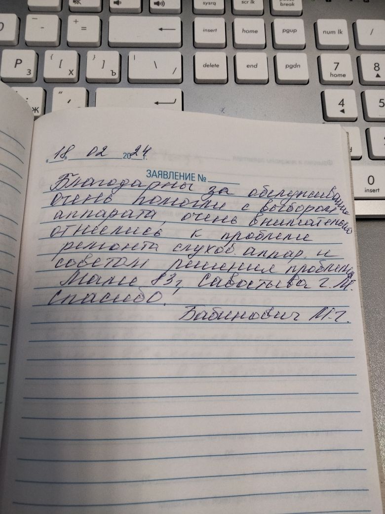 Благодарны за обслуживание. Очень помогли с выбором аппарата, очень внимательно отнеслись к проблеме ремонта слух. аппарата и советом решени проблемы. Маме 83 г., Савостьева Г.М. Спасибо!