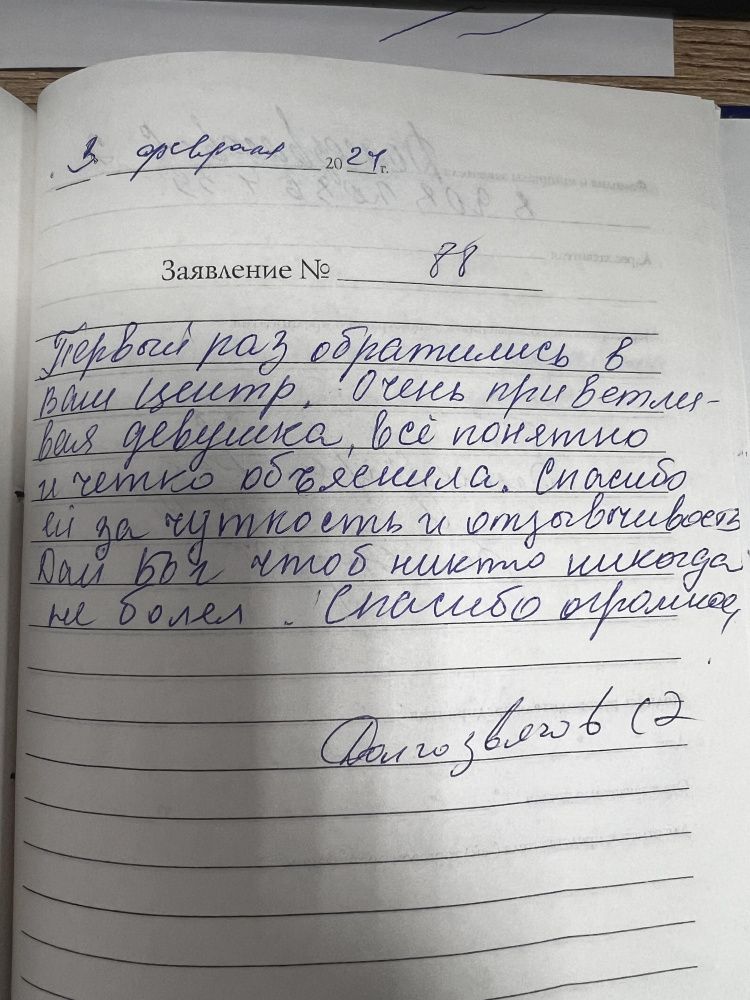 Первый раз обратились в ваш центр, очень приветливая девушка, все понятно и четко объяснила. Спасибо ей за чуткость и отзывчивость. Дай Бог чтоб никто никогда не болел. Спасибо огромное!