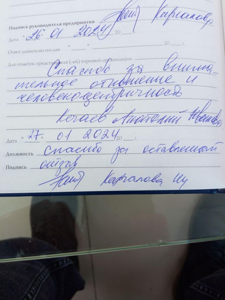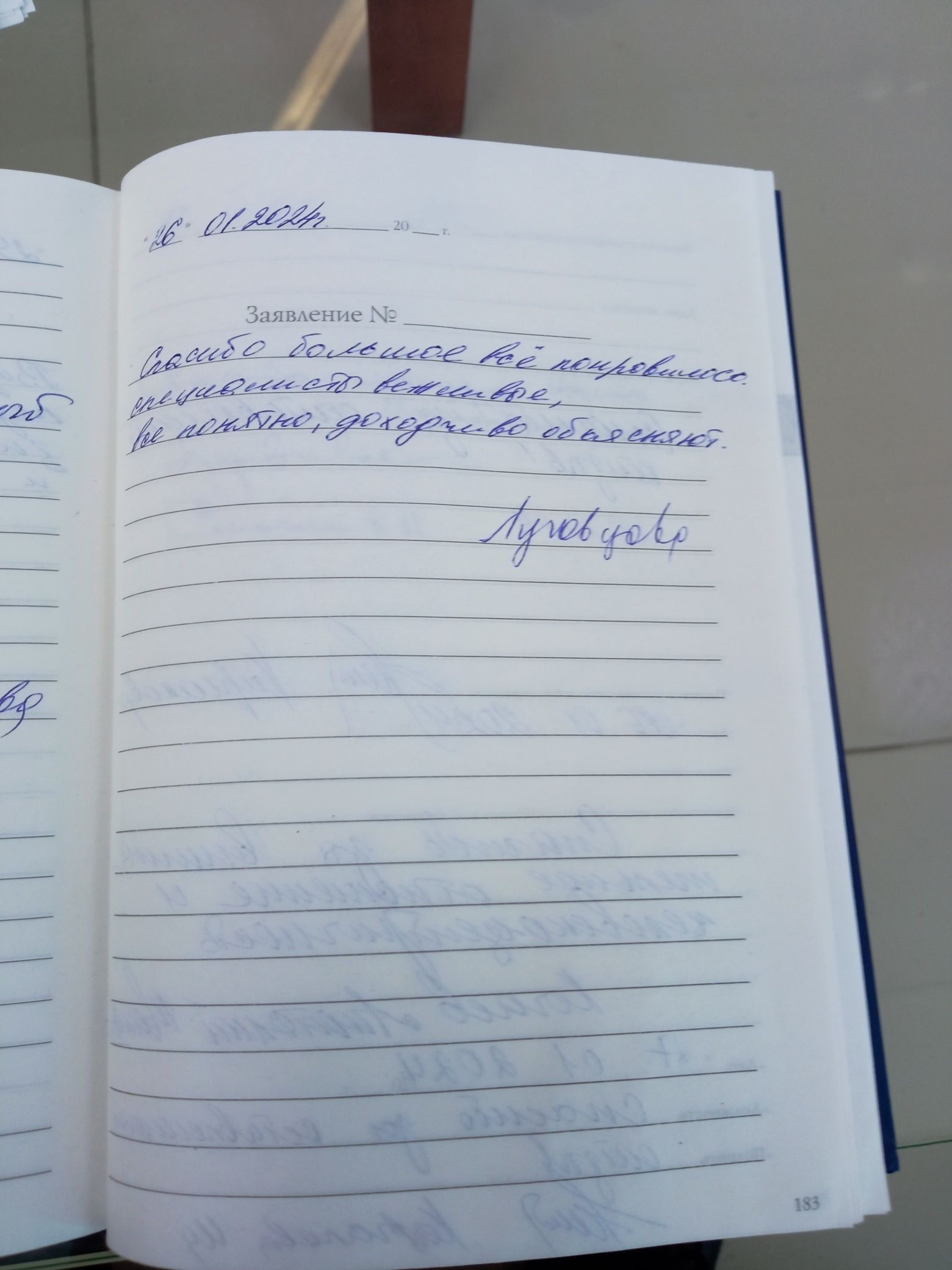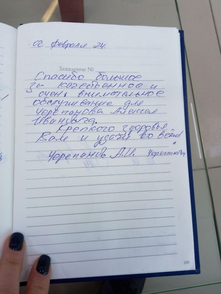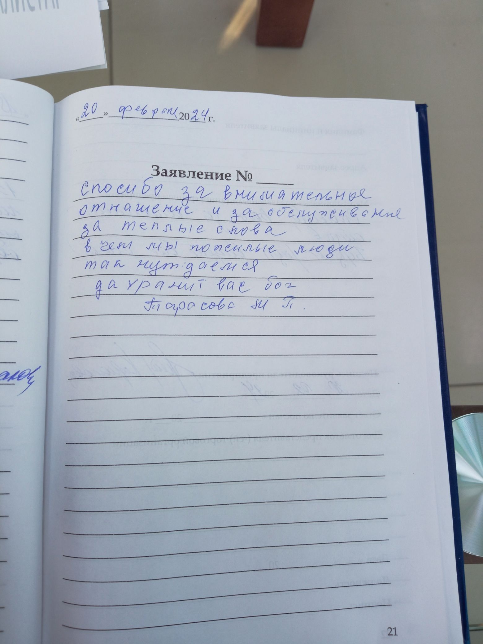 Спасибо за внимательное отношение и обслуживание, за теплые слова, в чем мы, пожилые люди, так нуждаемся.