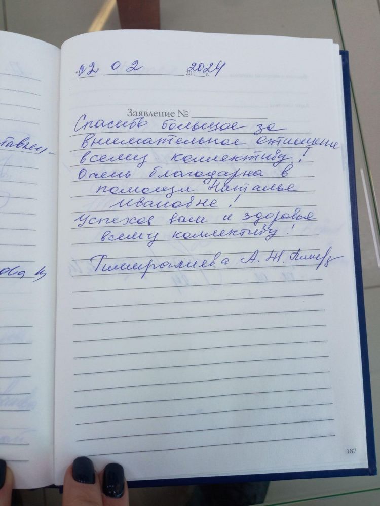 Спасибо большое за внимательное отношение всему коллективу! Очень благодарна в помощи Наталье Ивановне! Успехов Вам и здоровья всему коллективу!
