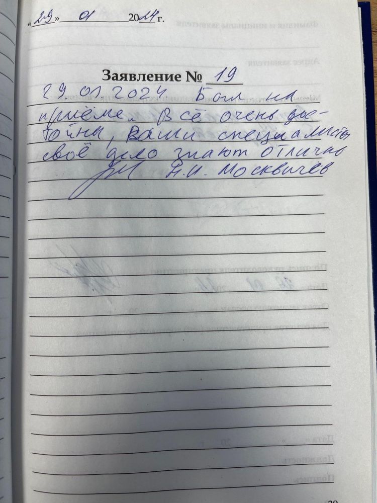 29.01.2024 Был на приеме. Все очень достойно, Ваши специалисты свое дело знают отлично.