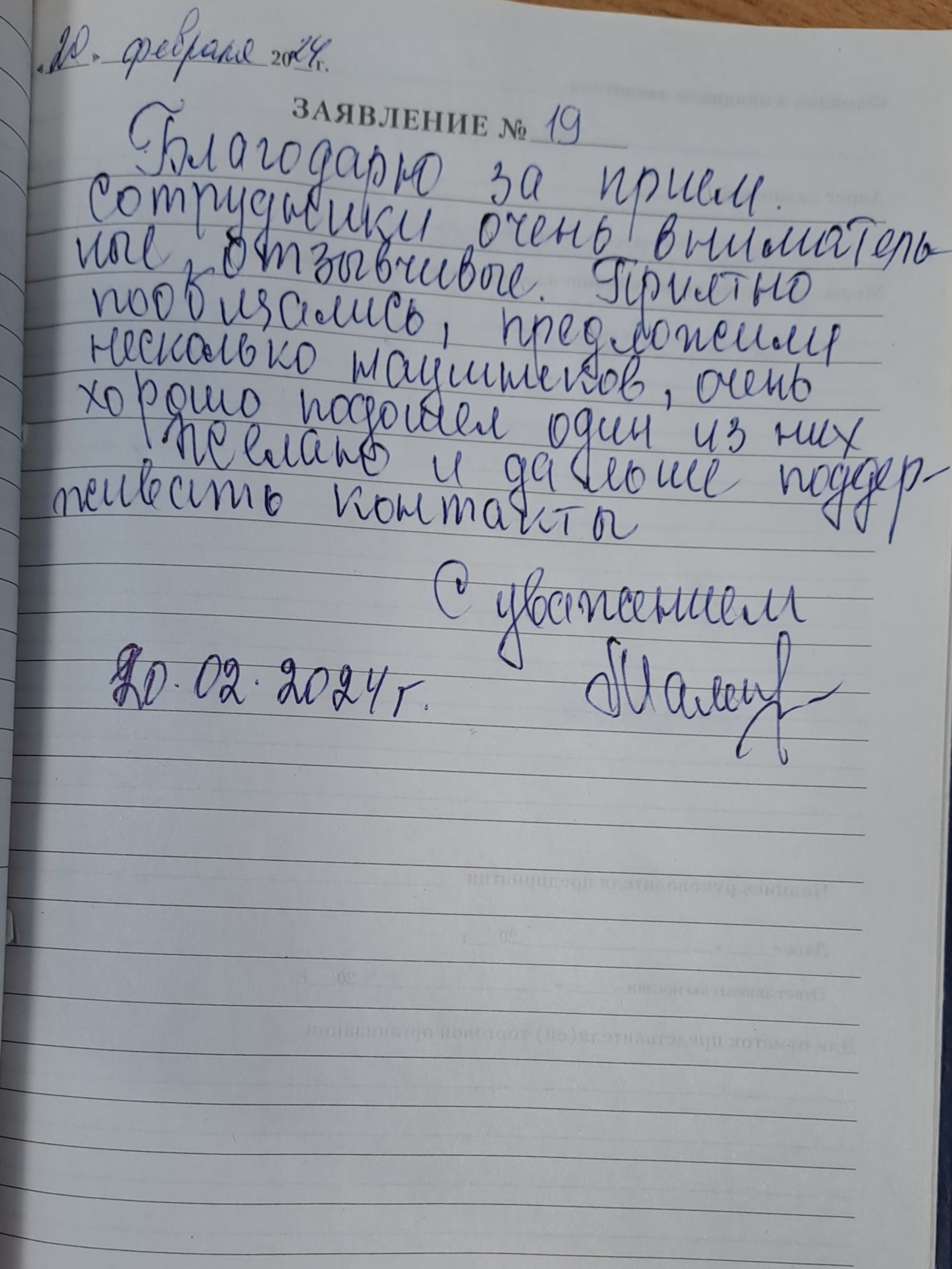 Благодарю за прием. Сотрудники очень внимательные, отзывчивые. Приятно пообщались, предложили несколько наушников , очень хорошо подошел один из них. Желаю и дальше поддерживать контакты. С уважением Мальцева С.В.