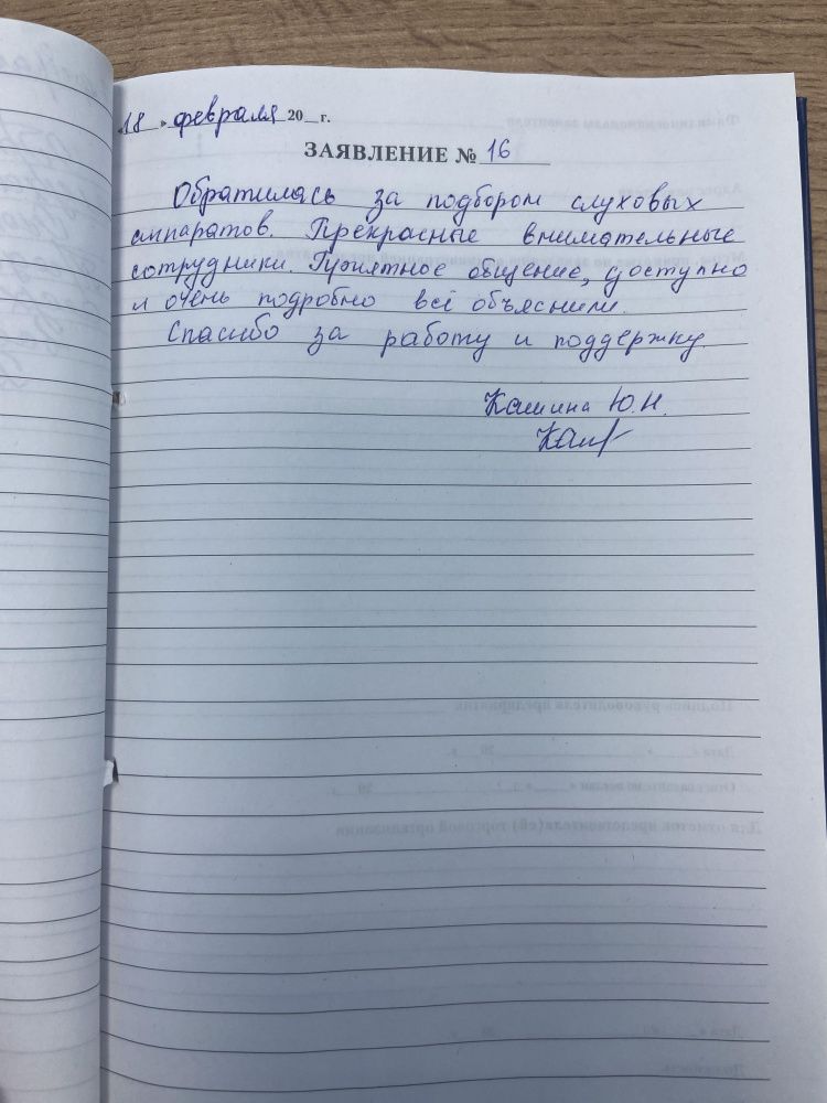 Обратилась за подбором слуховых аппаратов. Прекрасные внимательные сотрудники. Приятное общение, доступно и очень подробно все объяснили. Спасибо за работу и поддержку.