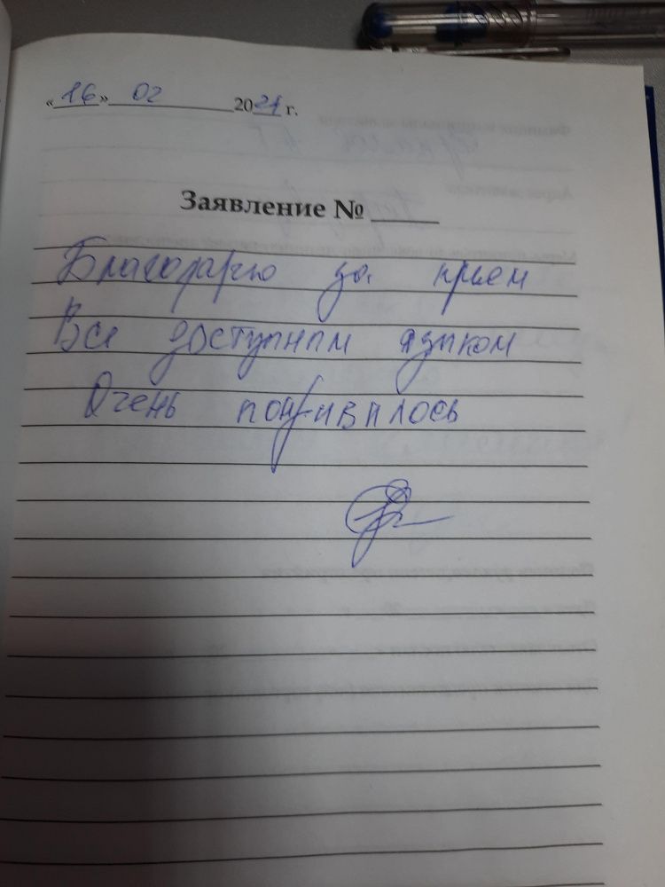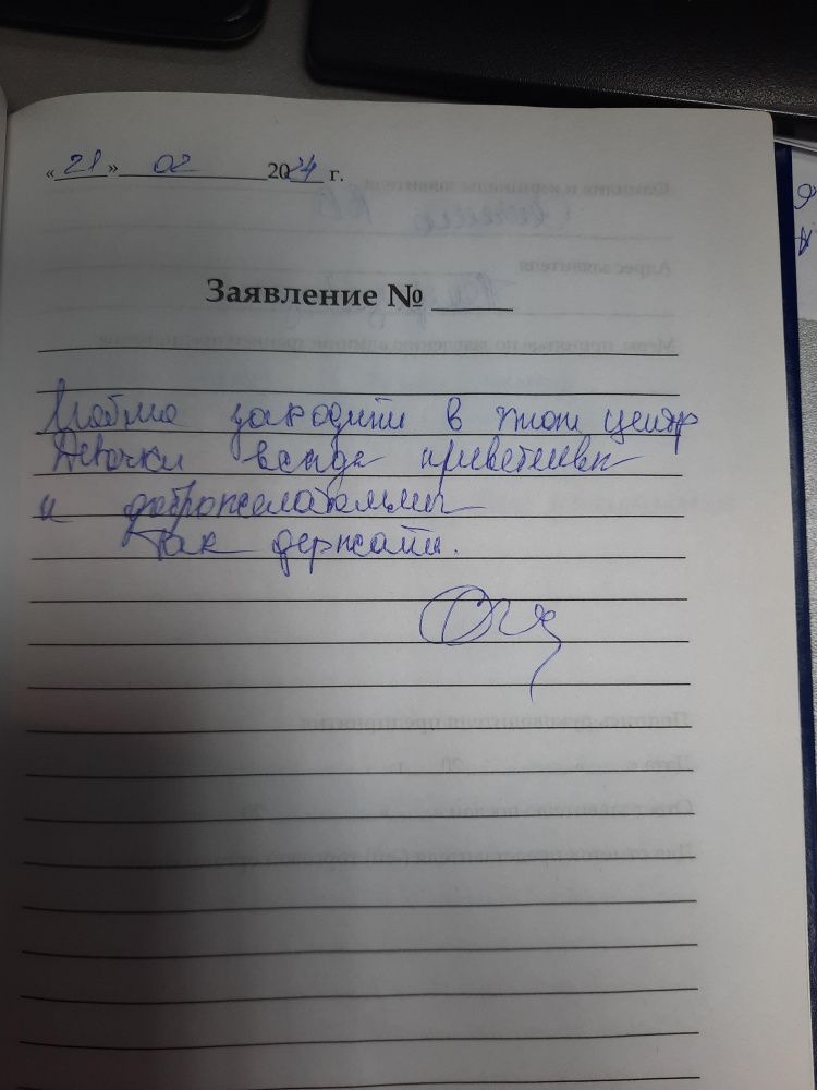 Спасибо!!! Доброжелательные сотрудники, отношение к нам с пониманием, с уважением. Агиев А.И.