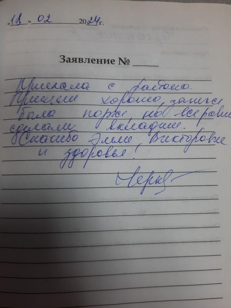 Приехала с района. Приняли хорошо, запись была позже, но все равно сделали вкладыш. Спасибо Эмме Викторовне и здоровья!