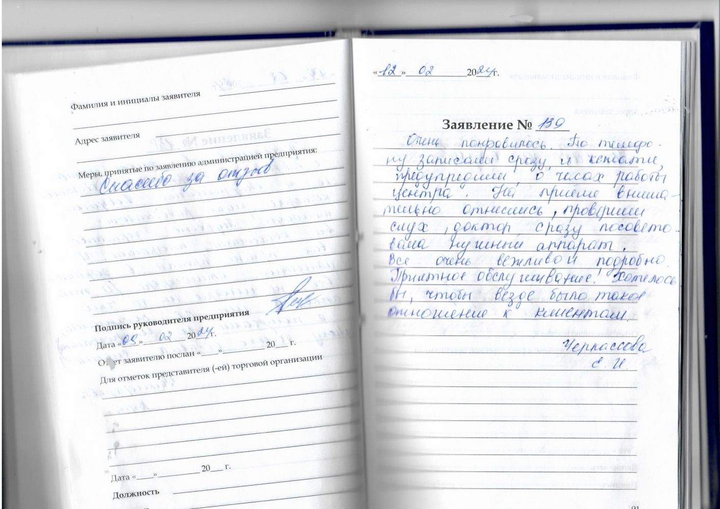 Очень понравилось. По телефону записали сразу, и кстати, предупредили о часах работы центра. На приеме внимательно отнеслись, проверили слух, доктор сразу посоветовала нужный аппарат. Всё очень вежливо и подробно. Приятное обслуживание! Хотелось бы, чтобы везде было такое отношение к клиентам