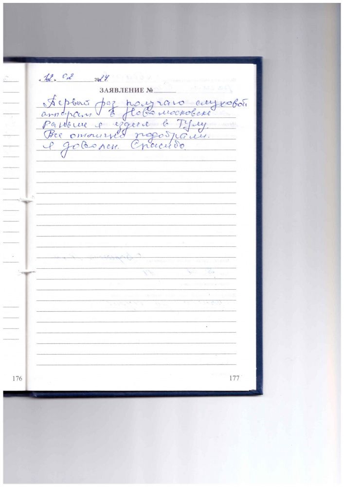 Первый раз получаю слуховой аппарат в Новомосковске. Раньше я ездил в Тулу. Всё отлично подобрали. Я доволен. Спасибо.