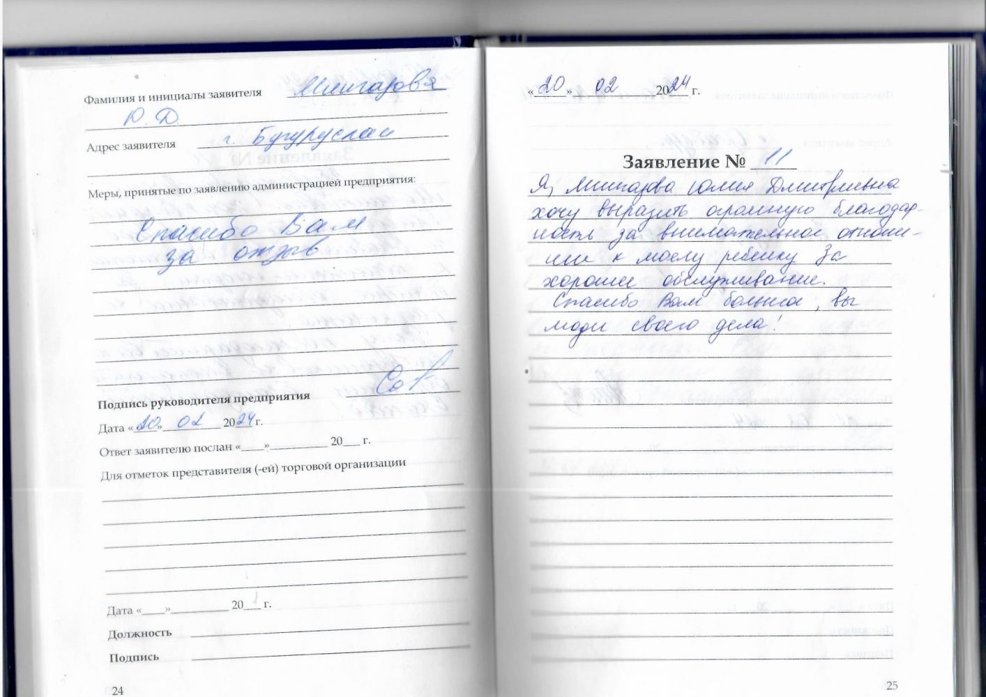 Я, Мингазова Юлия Дмитриевна хочу выразить огромную благодарность за внимательное отношение к моему ребенку. За хорошее обслуживание. Спасибо Вам большое, вы люди своего дела.