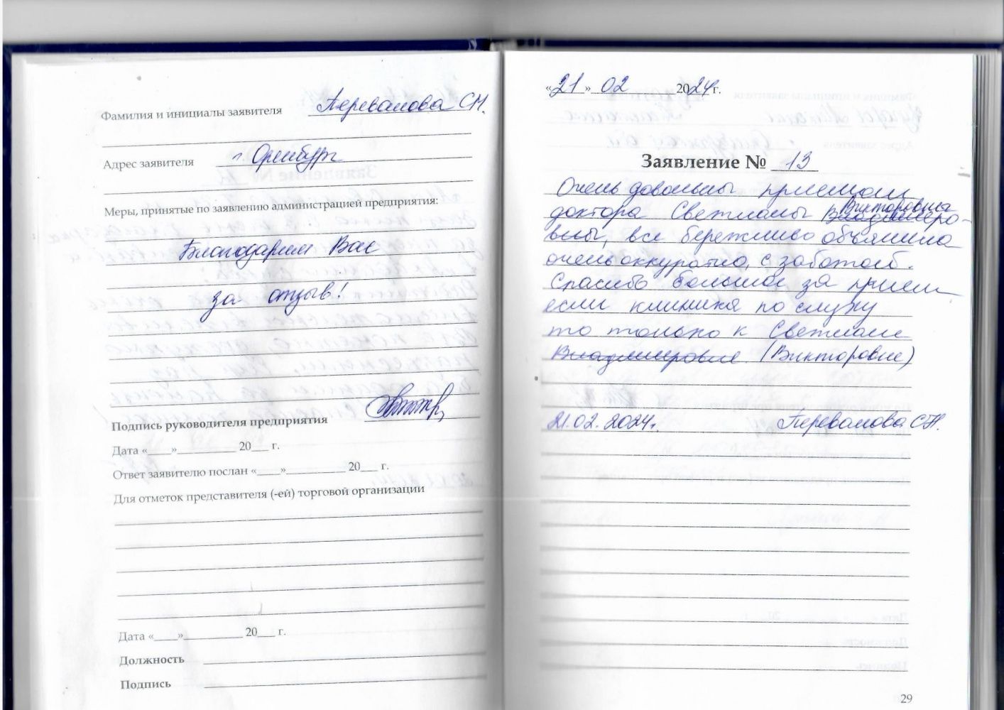 Прошу за хорошее и внимательное отношение к пациентам , объявить благодарность