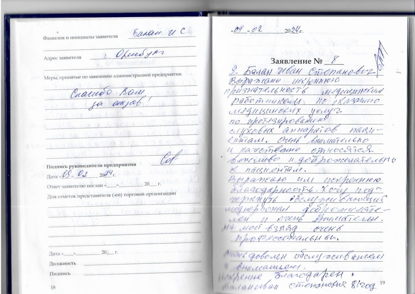 Я, Балан Иван Степанович. Выражаю искреннюю признательность медицинским работникам по оказанию медицинских услуг по протезированию слуховых аппаратов пациентам. Очень внимательно и качественно относятся вежливо и доброжелательно к пациентам. Выражаю им искреннюю благодарность. Хочу подчеркнуть обслуживающий медперсонал доброжелателен и очень внимателен. На мой взгляд очень профессиональны. Очень доволен обслуживанием и вниманием. Искренне благодарен.