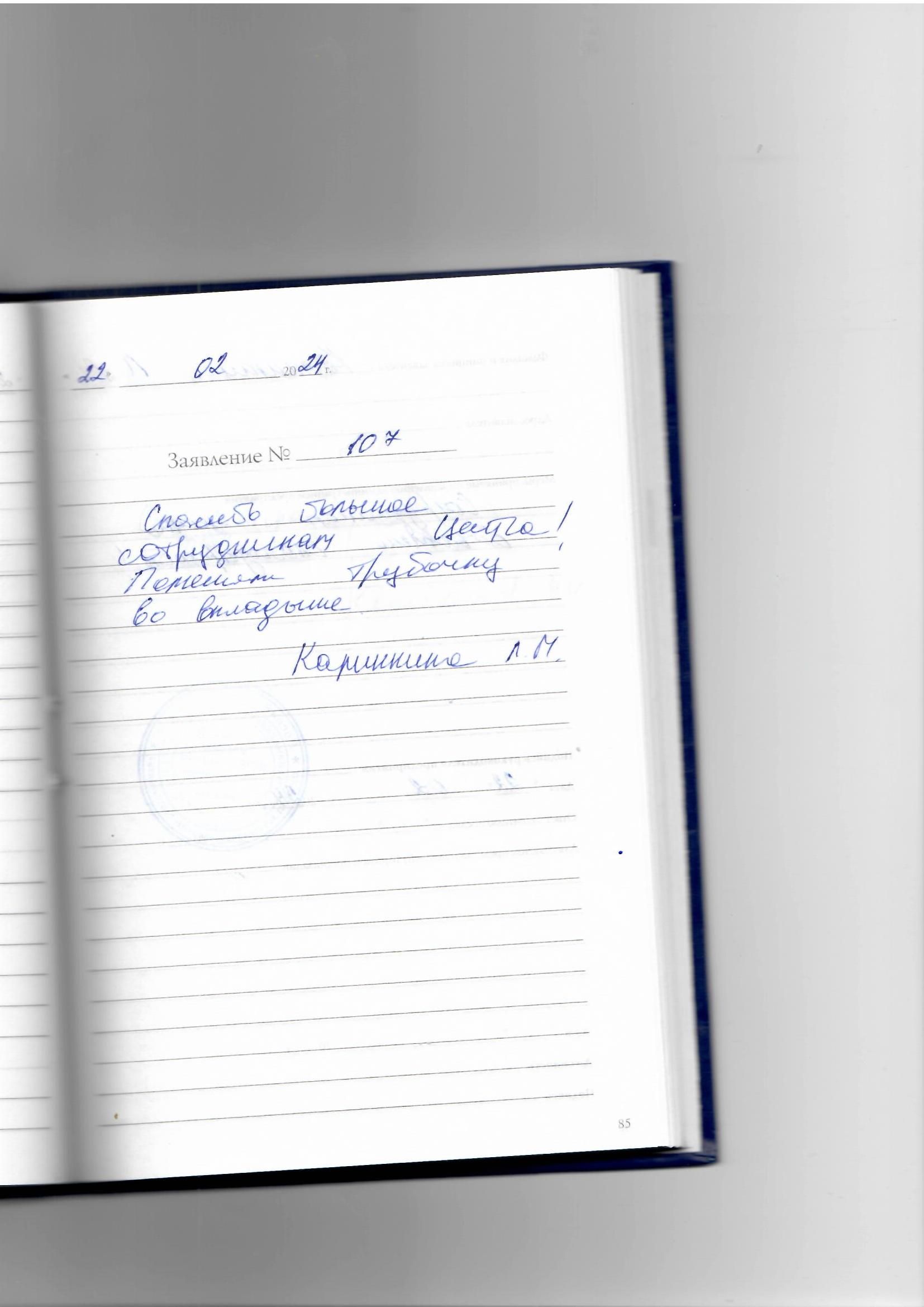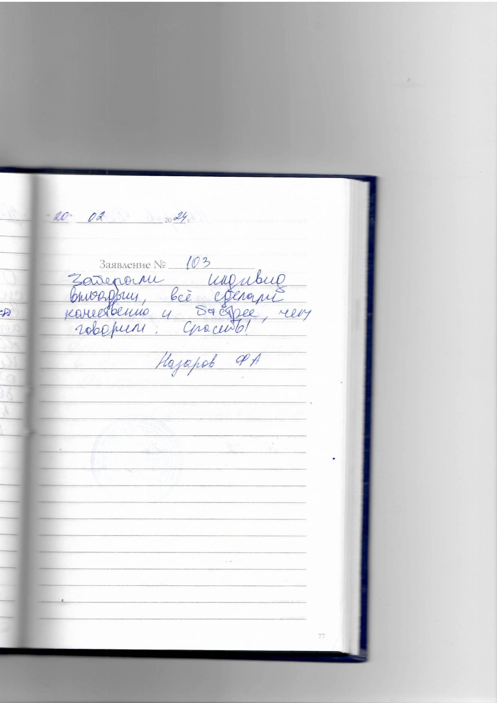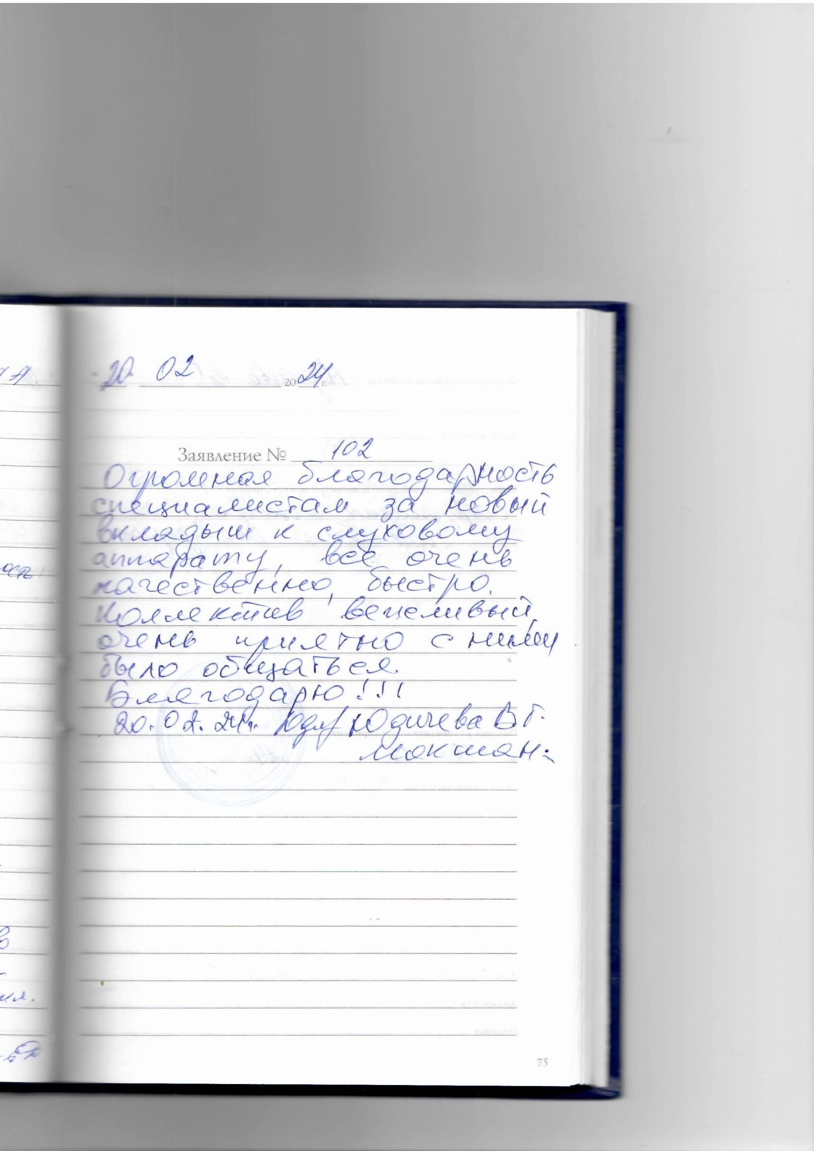 Я, Тимофеева Роза Федоровна, из деревни приехав, получила от работающего персонала очень хорошее приветливое взаимопонимание, касающееся моего здоровья. Доброта, приятное отношение и даже хорошее отношение к совей работе. Очень рады и довольны общим результатом. Так держать и спасибо девочкам: Наталье Михайловне Шакировой, Вере Викторовне Лебедевой, Евгении Вадимовне Александрийской.
