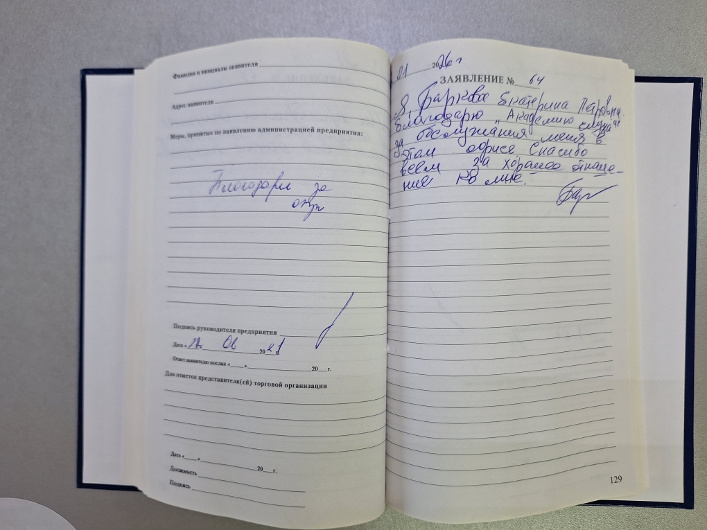 Я, Баркова Екатерина Петровна благодарю "Академию слуха" за обслуживание меня в этом офисе. Спасибо всем за хорошее отношение ко мне.