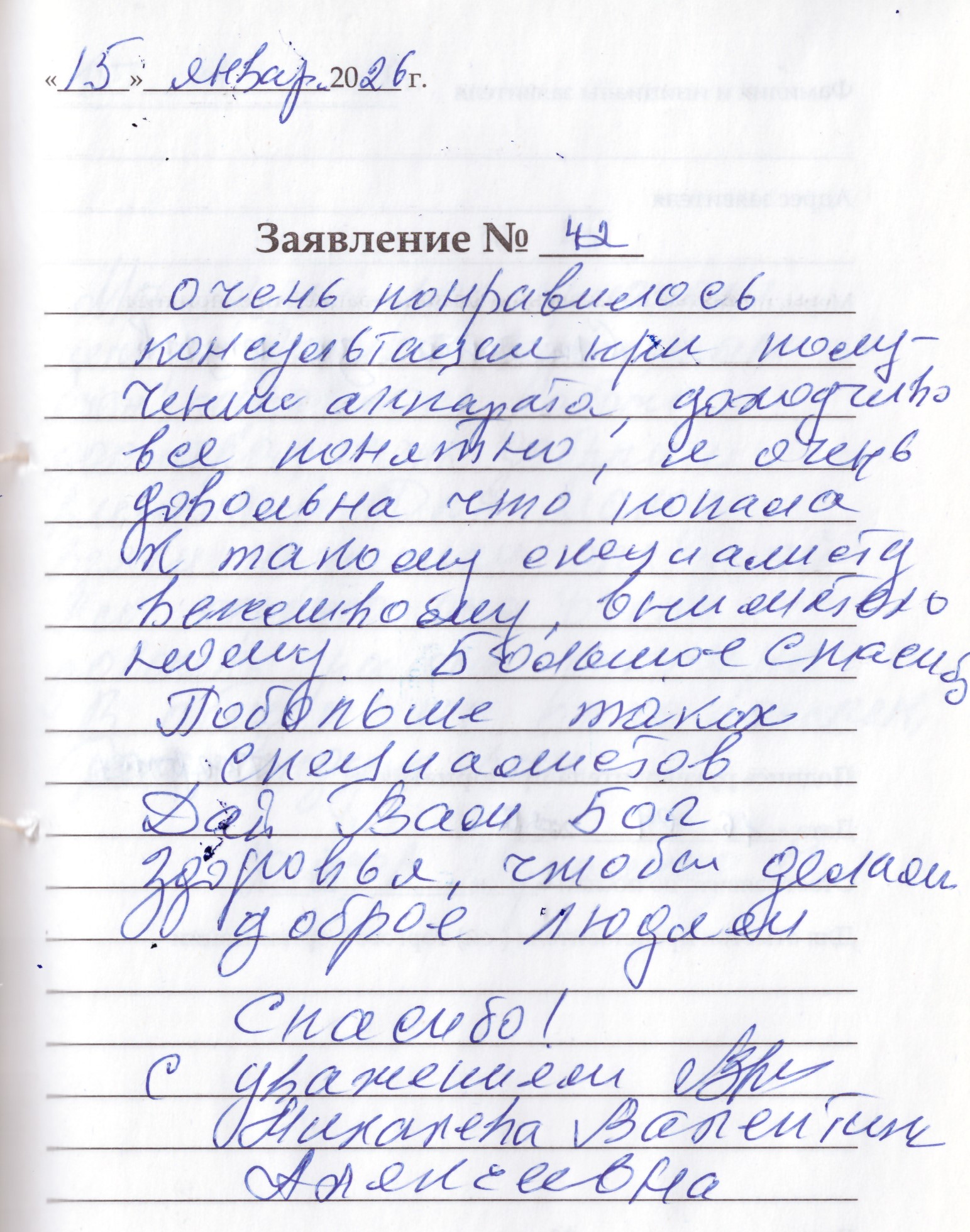 Очень понравилась консультация при получении аппарата, доходчиво все понятно, я очень довольна что попала к такому специалисту вежливому, внимательному. Большое спасибо. Побольше таких специалистов. Дай Вам Бог здоровья, чтобы делали доброе людям. Спасибо! С уважением.