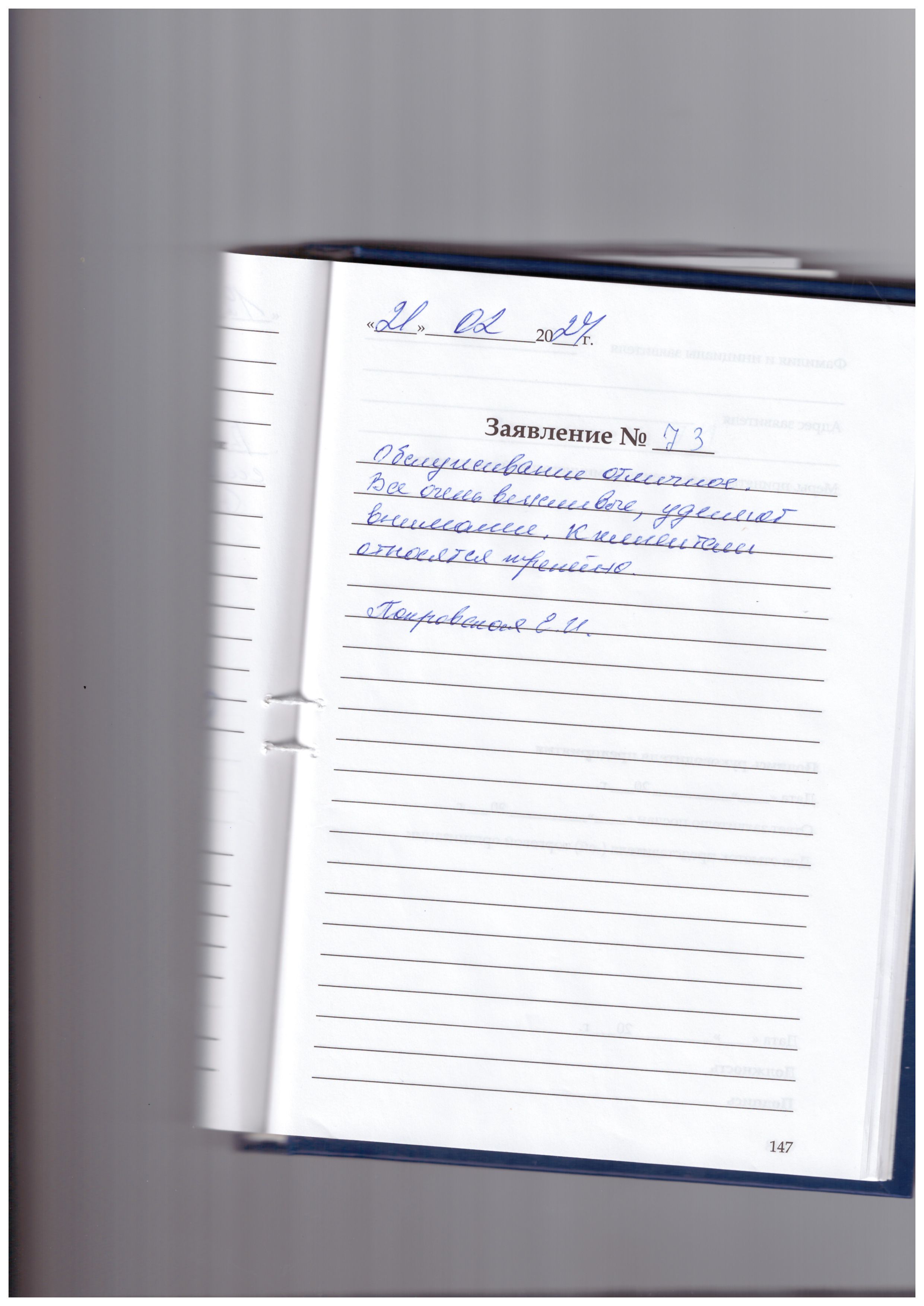 Обслуживание отличное. Все очень вежливые, уделяют внимание к клиентам, относятся трепетно. Покровская Е.И