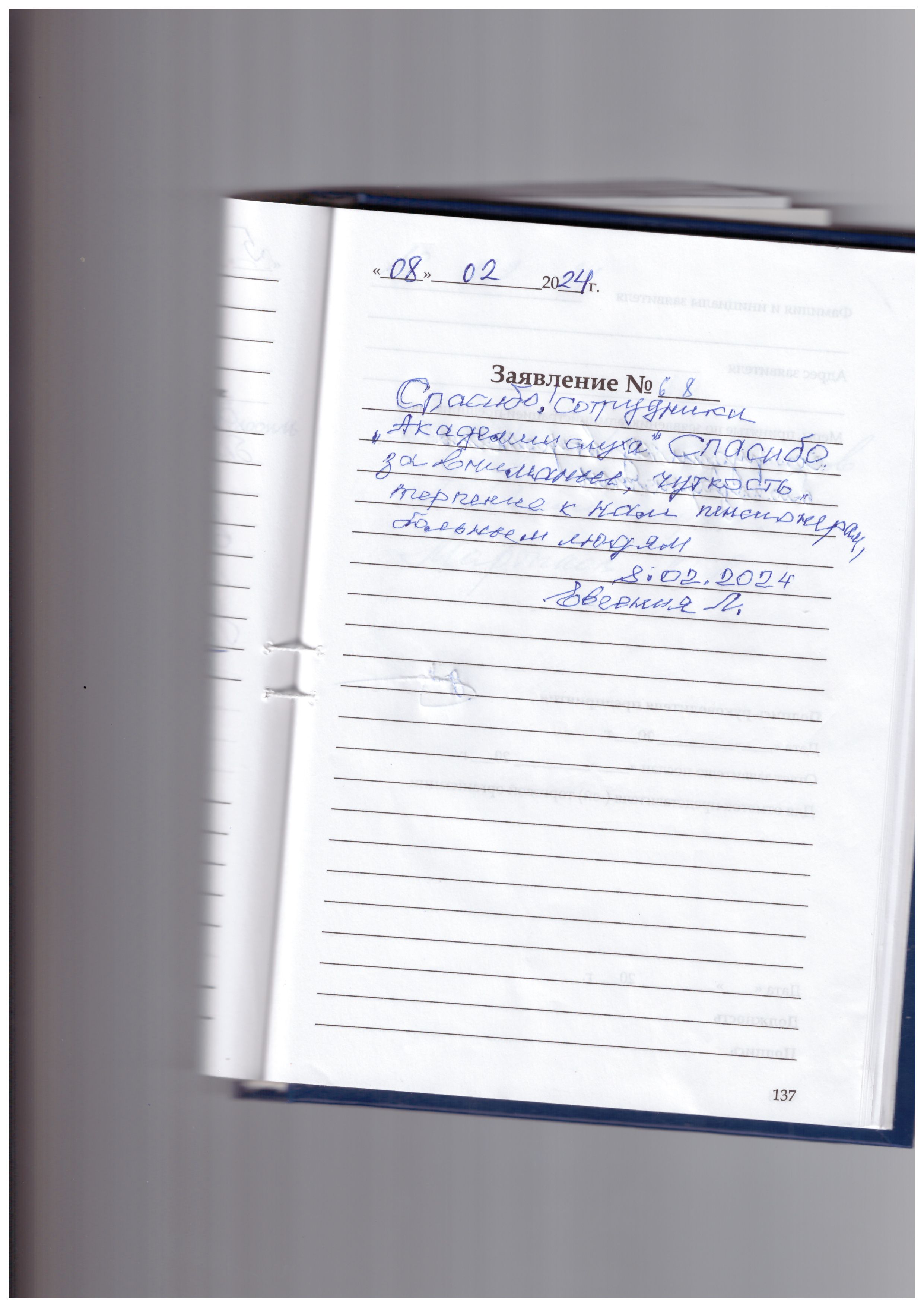 Большое спасибо Оксане Дмитриевне Тимуру Викторовичу за их работу, внимание, понимание. Успехов им в их интересной работе. Счастья им здоровье на долгие годы. Чтоб они работали долго и ходили на свою работу с удовольствием. Процветания им во всем.Пустовая Е.В