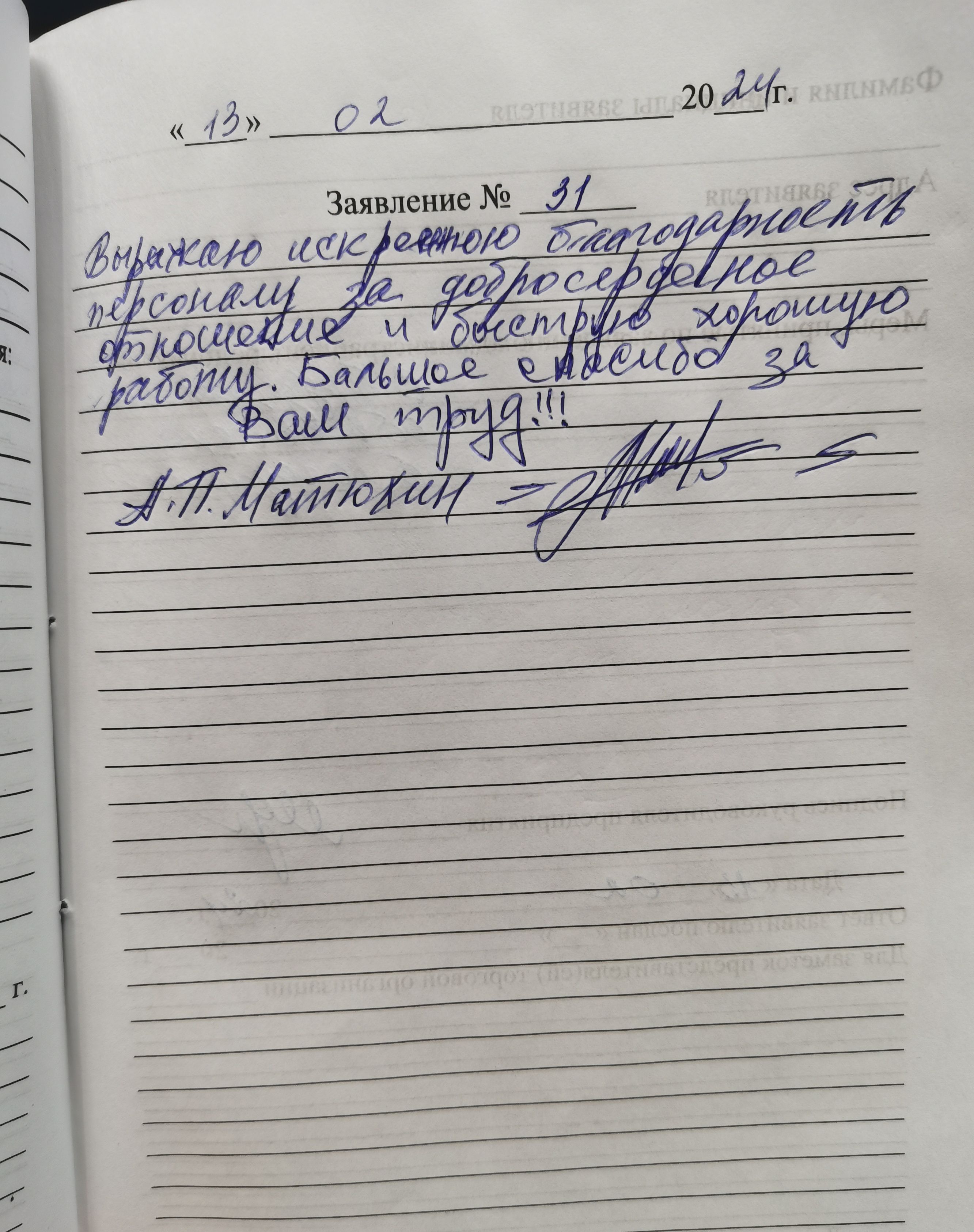 За обслуживание благодарим, за чуткое внимание. Клиент Хохлова А.Н.
